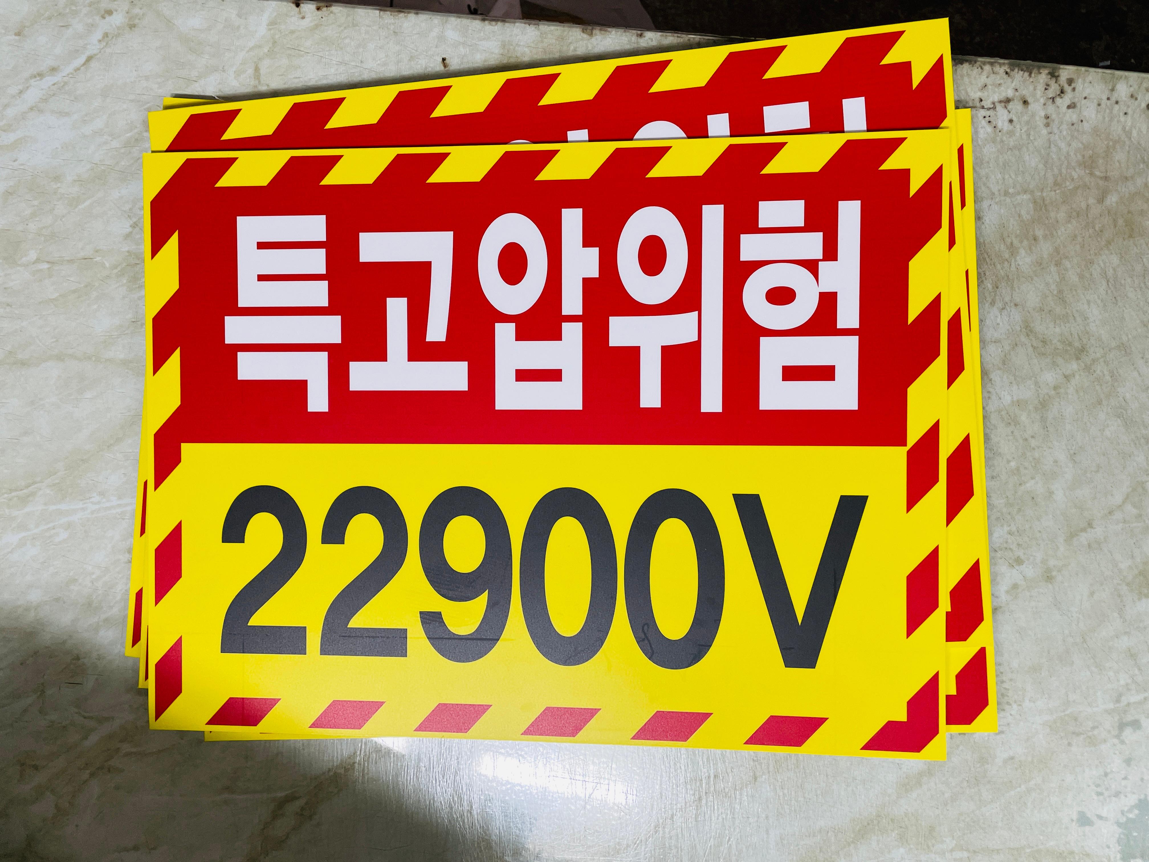 특고압위험 22900V 빨간색빗살 스티커 표지판 자석 표시 특별고압 전기 취급시설 장비 설비 배전판 판넬 단자함 분전반 특별고압으로 사망사고의 위험이 있어 이 표지를 부착합니다.