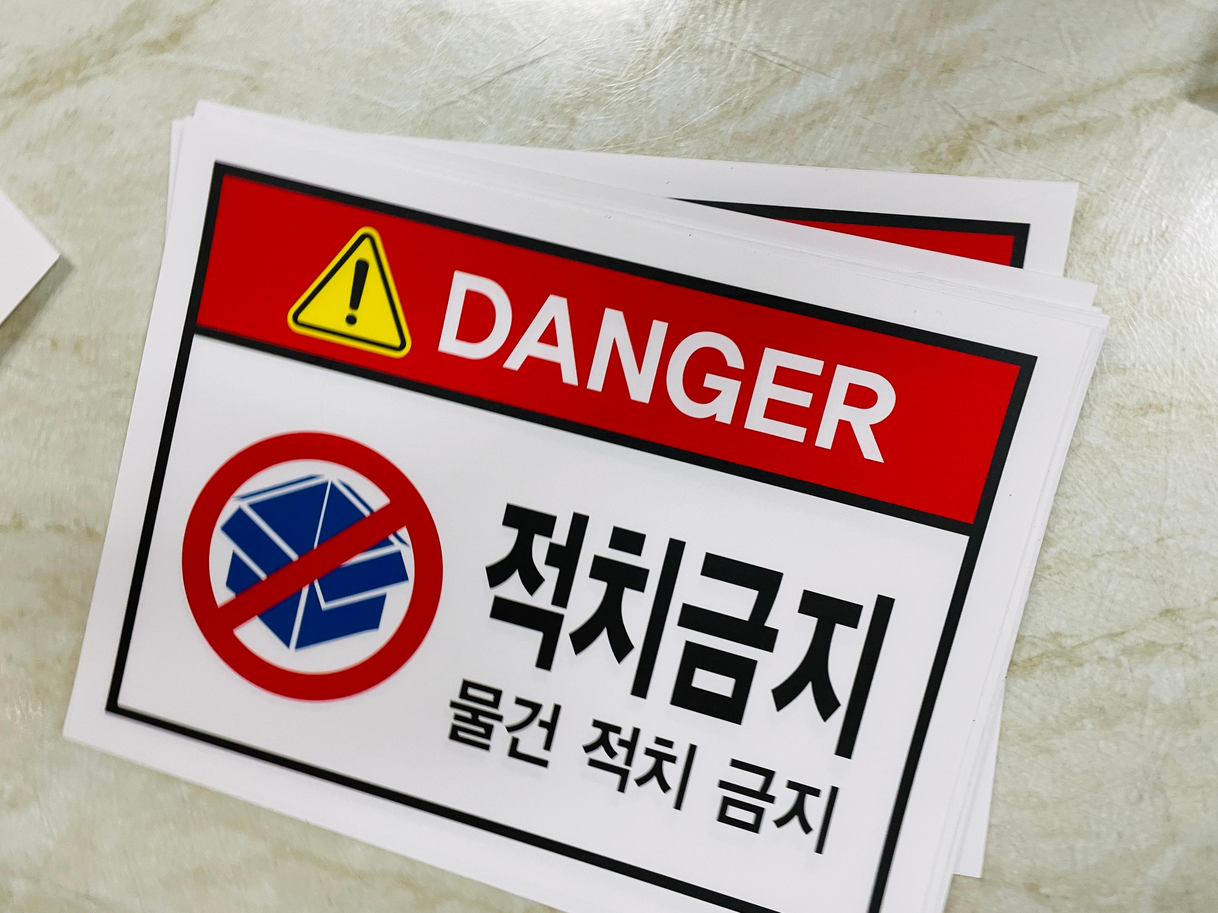 DANGER 적치금지 물건 적치 금지 가로 산업스티커 표지판 자석 표시 물건을 쌓거나 놔두었을때 안전사고에 위험이 있기 때문에 안전사고를 예방하기 위해 표지를 부착합니다.