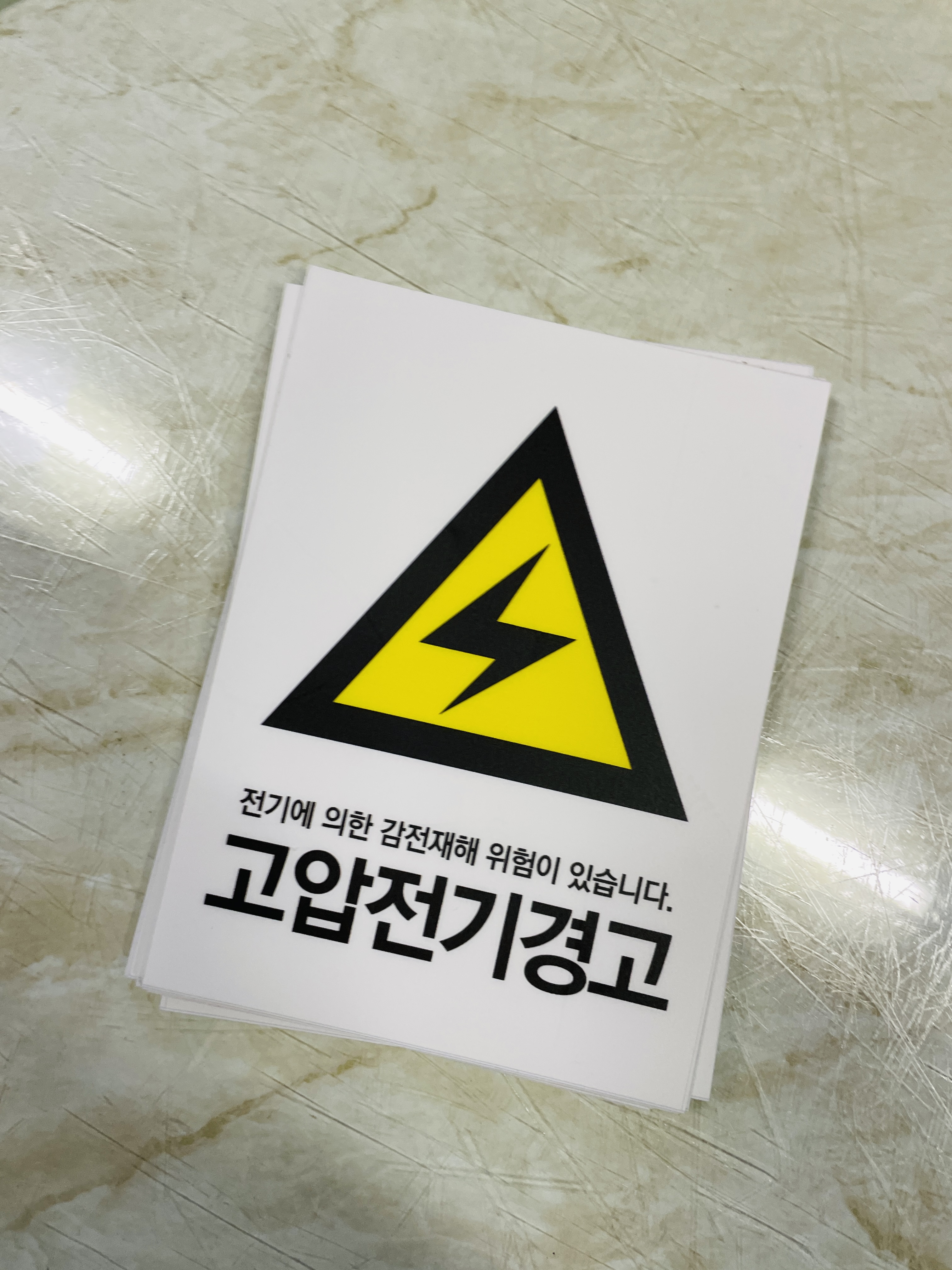 전기에 의한 감전재해 위험이 있습니다 고압전기경고 시설점검 안전관리 표시 스티커 표지판 자석 감전사고를 예방하기 위해 안전표지를 부착합니다.