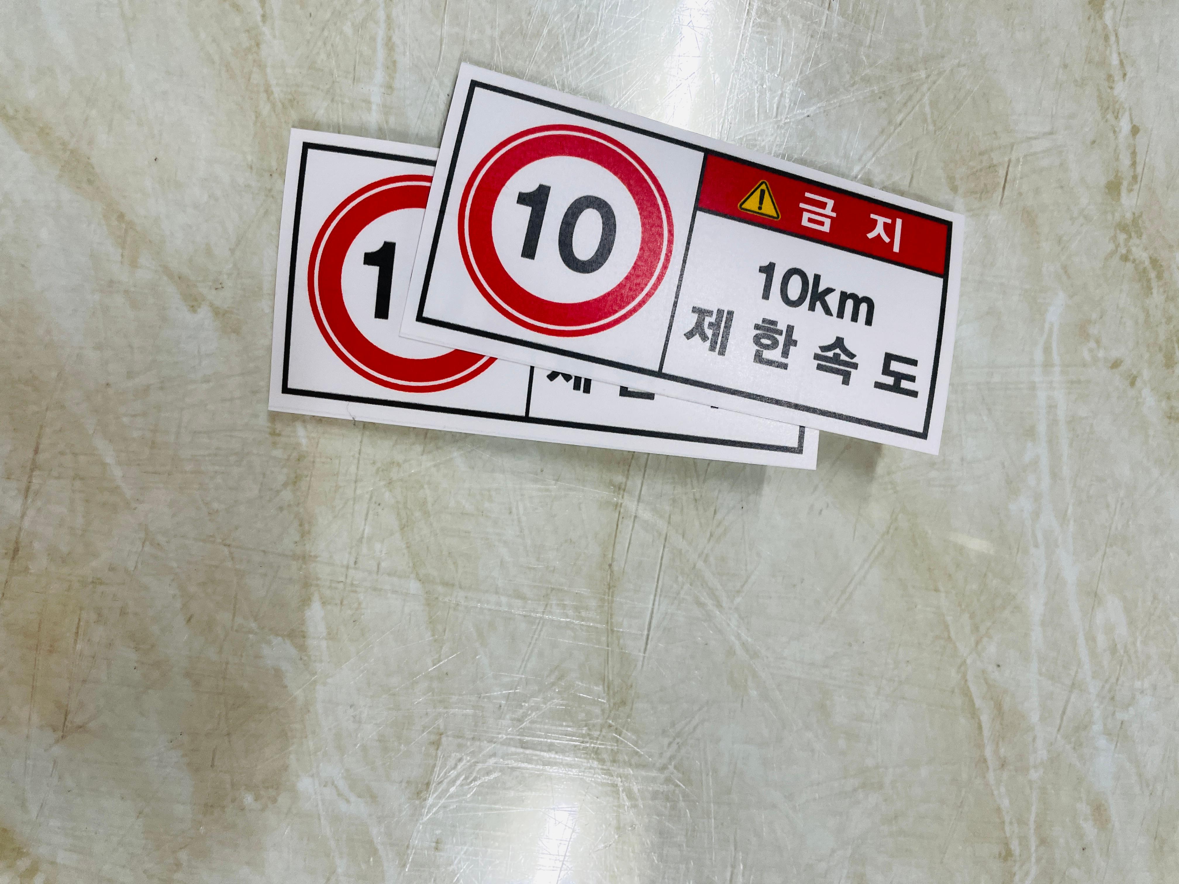 10km 제한속도 산업스티커 표지판 자석 지게차 및 기타 이동수단의 사고를 예방하기 위해 제한속도를 지정하여 사고를 방지하고자 표지를 부착합니다.