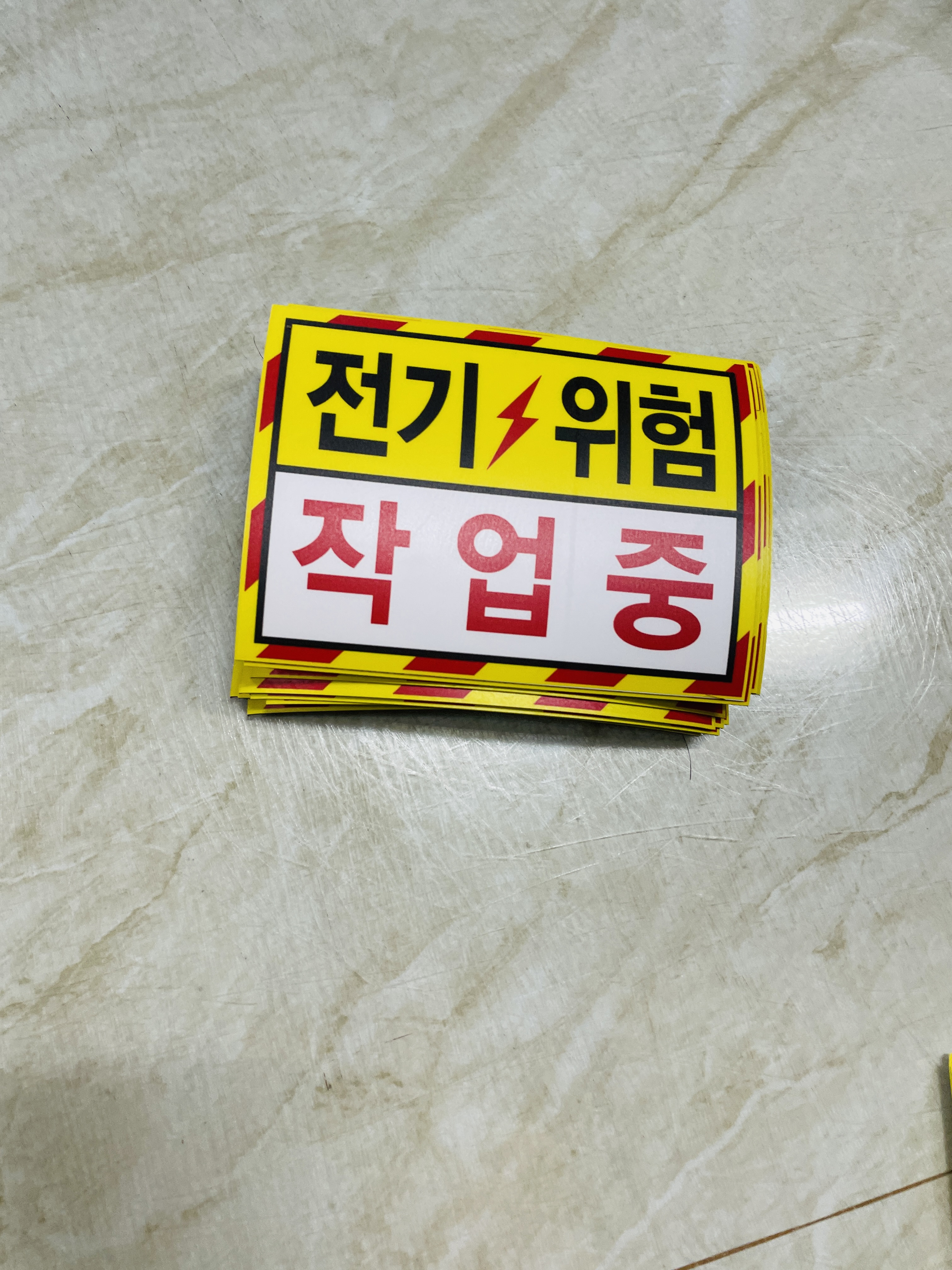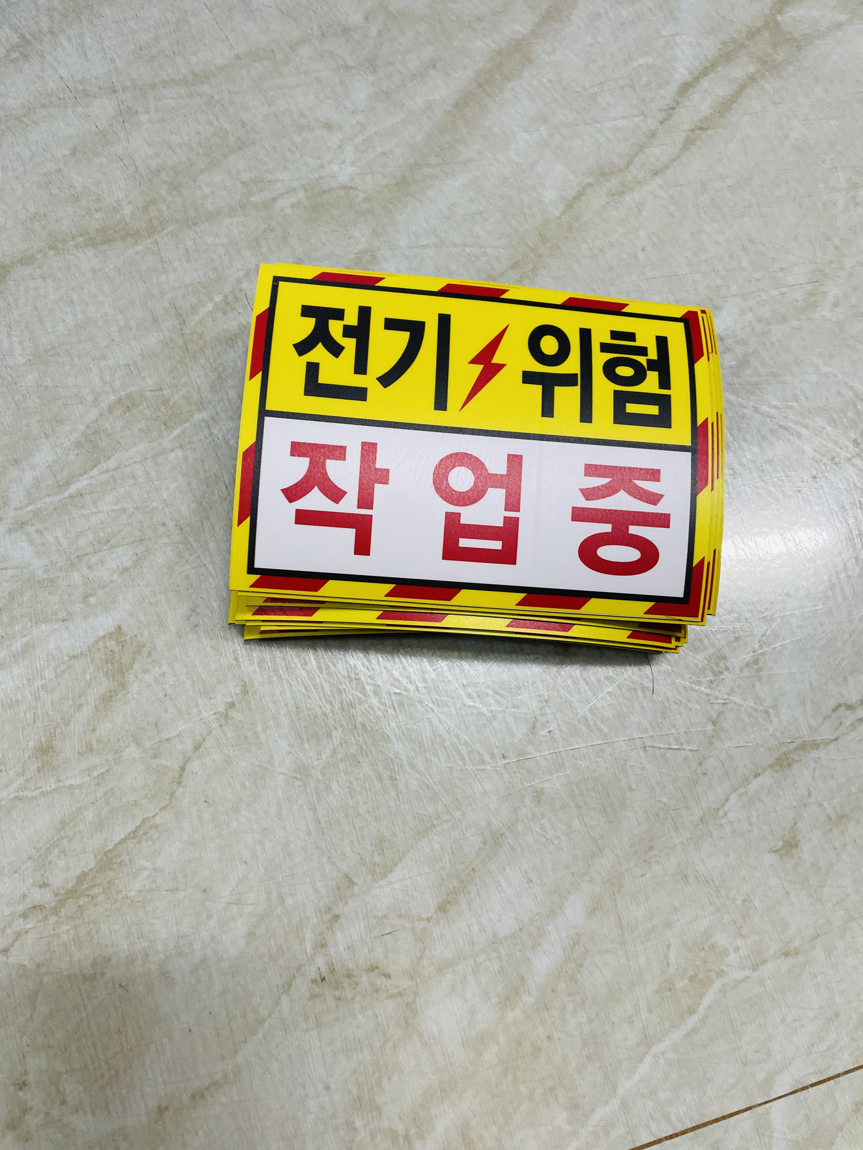 전기위험 작업중 노란색빨간색 빗살 스티커 표지판 자석 표시 전기 작업중에 외부인이나 작업자가 아닌 다른 사람이 접근하여 감전사고가 발생할 수 있는 곳에 안전표지를 부착하여 사고를 예방합니다.