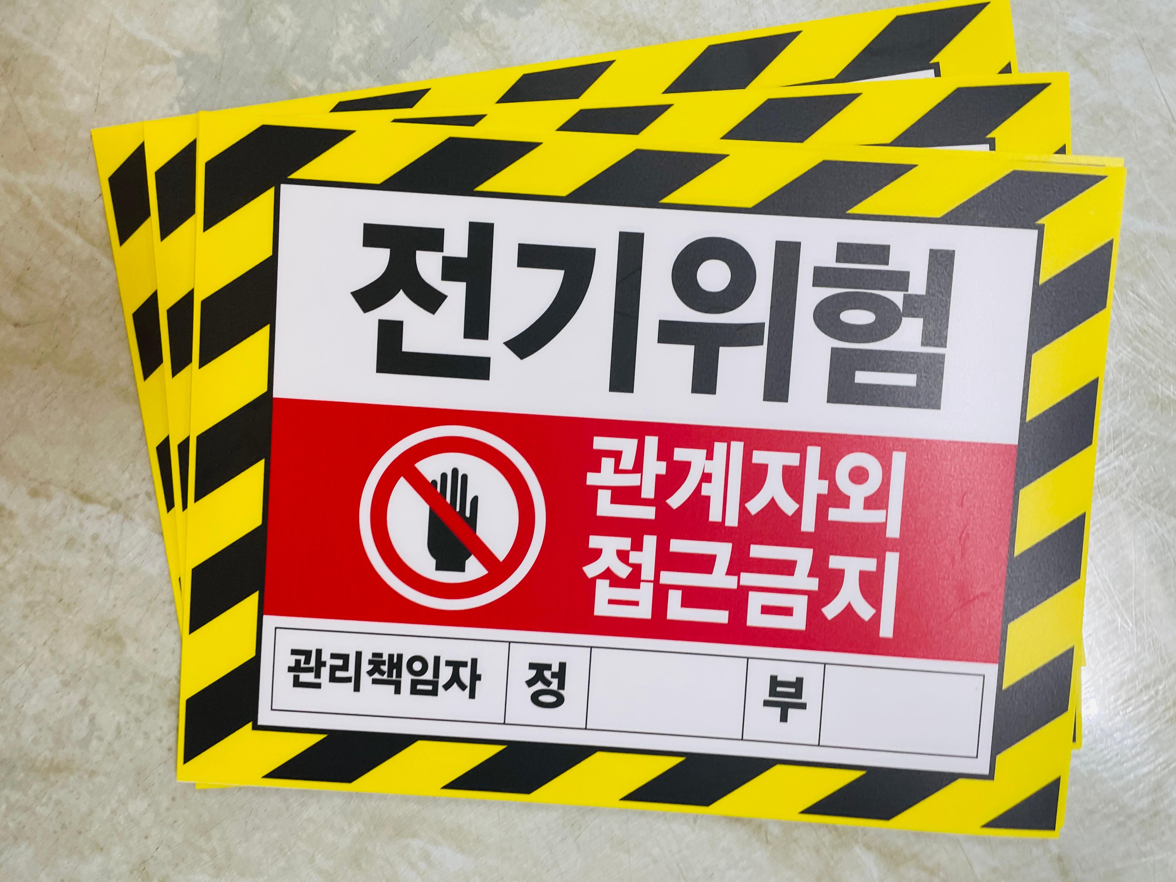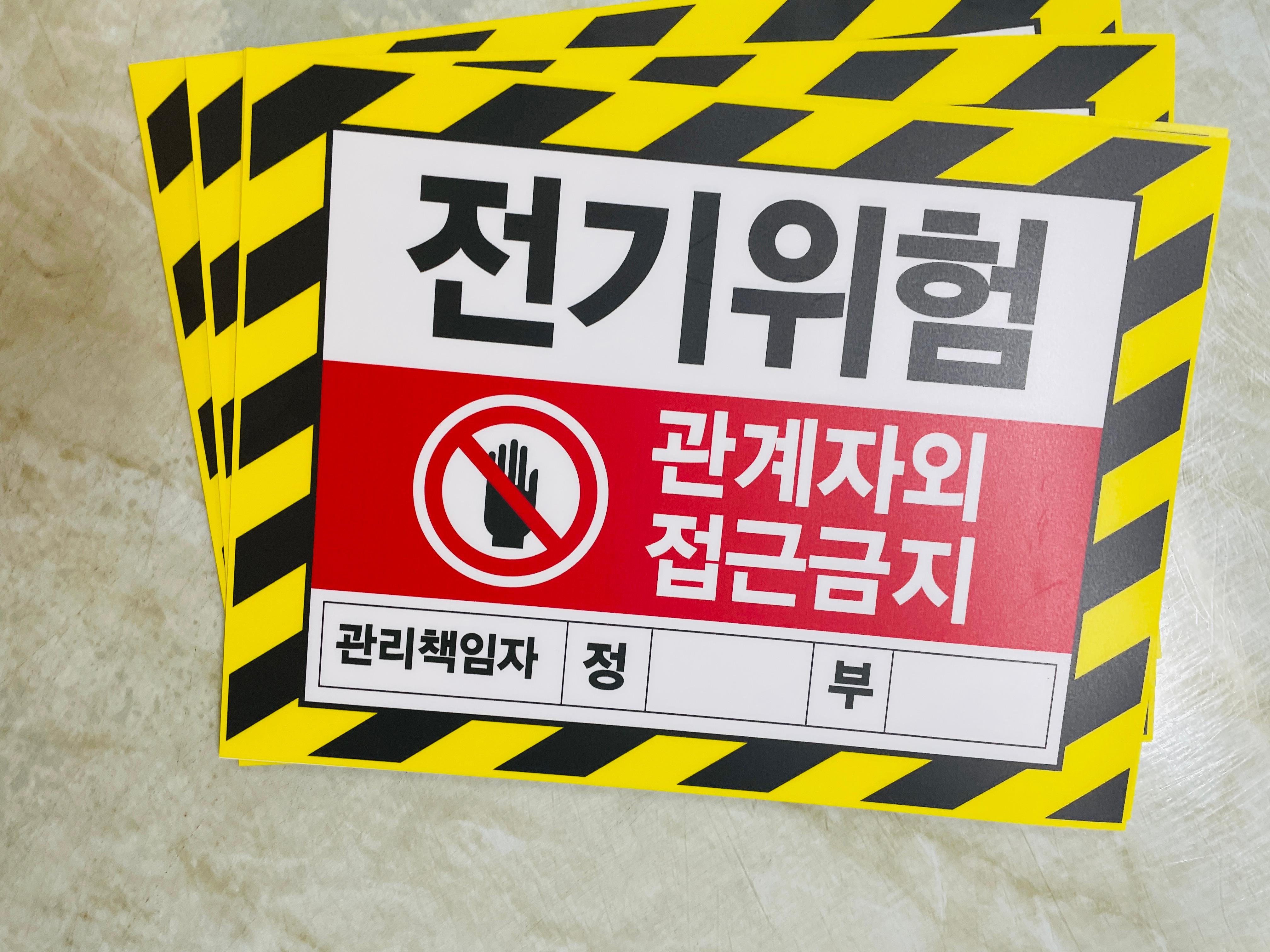 전기위험 관계자외 접근금지 관리책임자 정 부 시설점검 안전관리 표시 스티커 표지판 자석 표시 전기실이나 분전함 판넬 등에 관련책임자의 이름을 명시해서 관련 책임자를 빠르게 인지할 수 있고 관련책임자 외 접근을 하지 못하도록 안전표지를 부착하여 사고를 예방합니다.