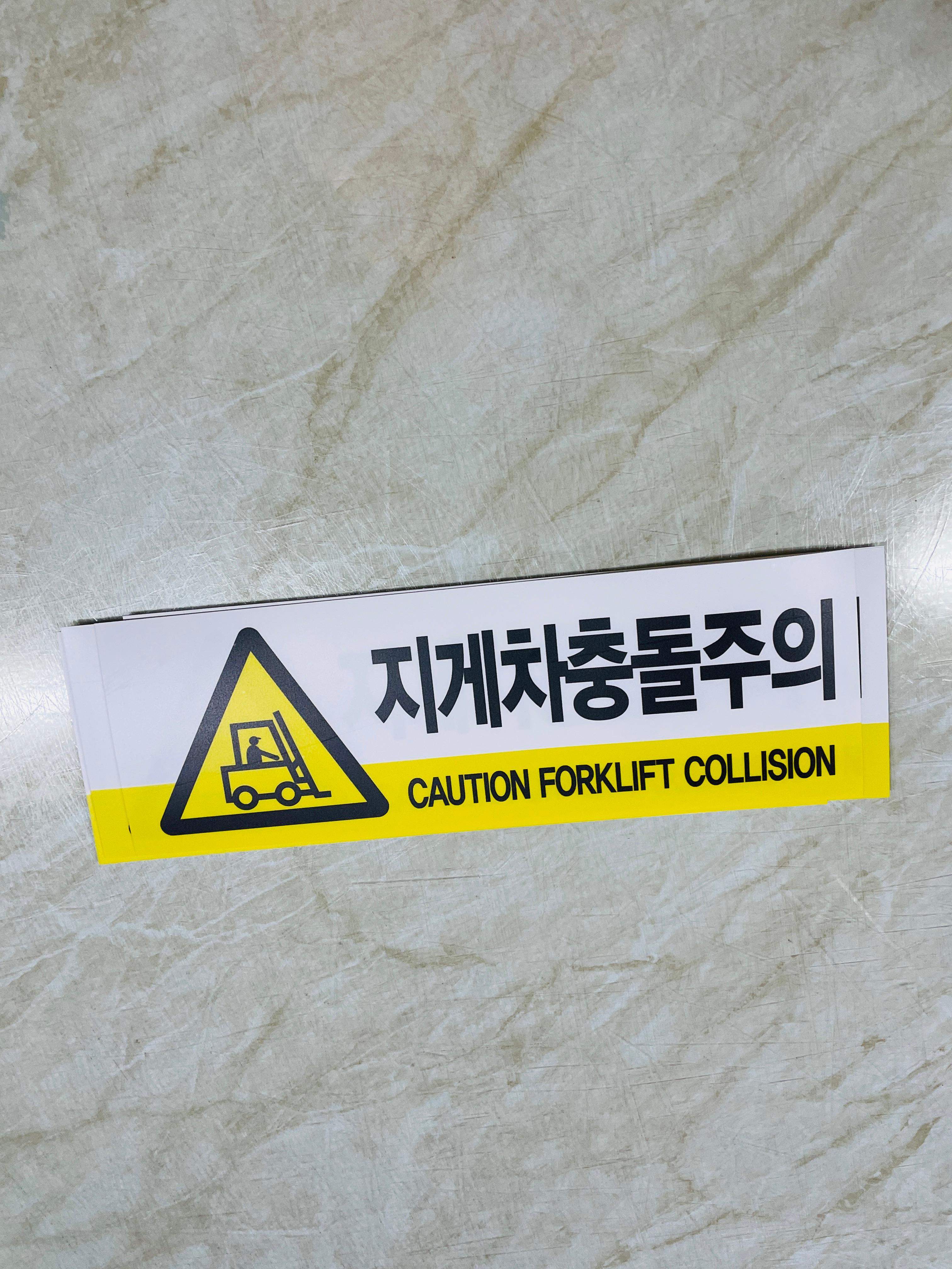 지게차 충돌주의 산업스티커 표지판 자석 노란색 CAUTION FORKLIFT COLLISION 물류 이동지역에 안전표지를 부착하여 사고를 예방합니다.