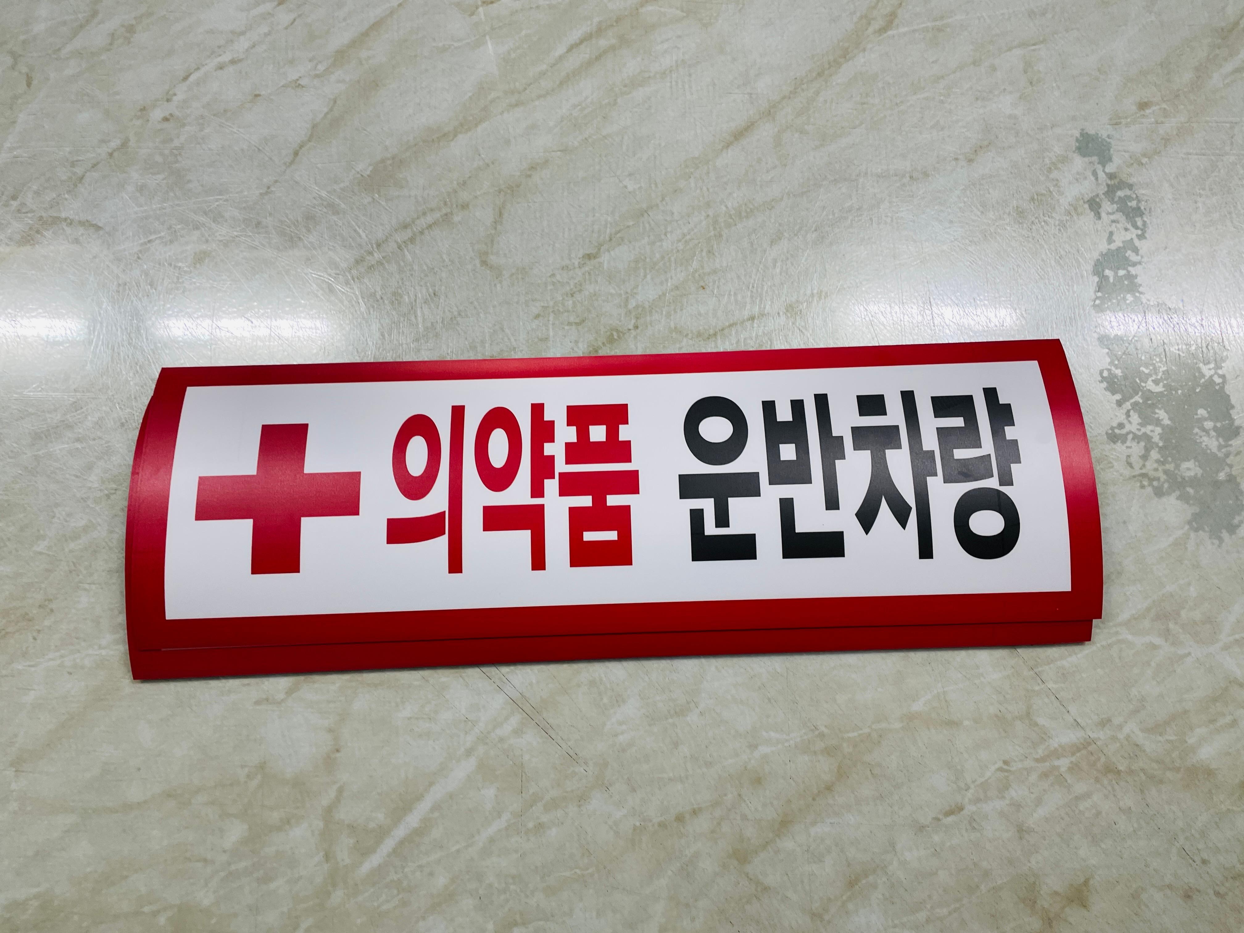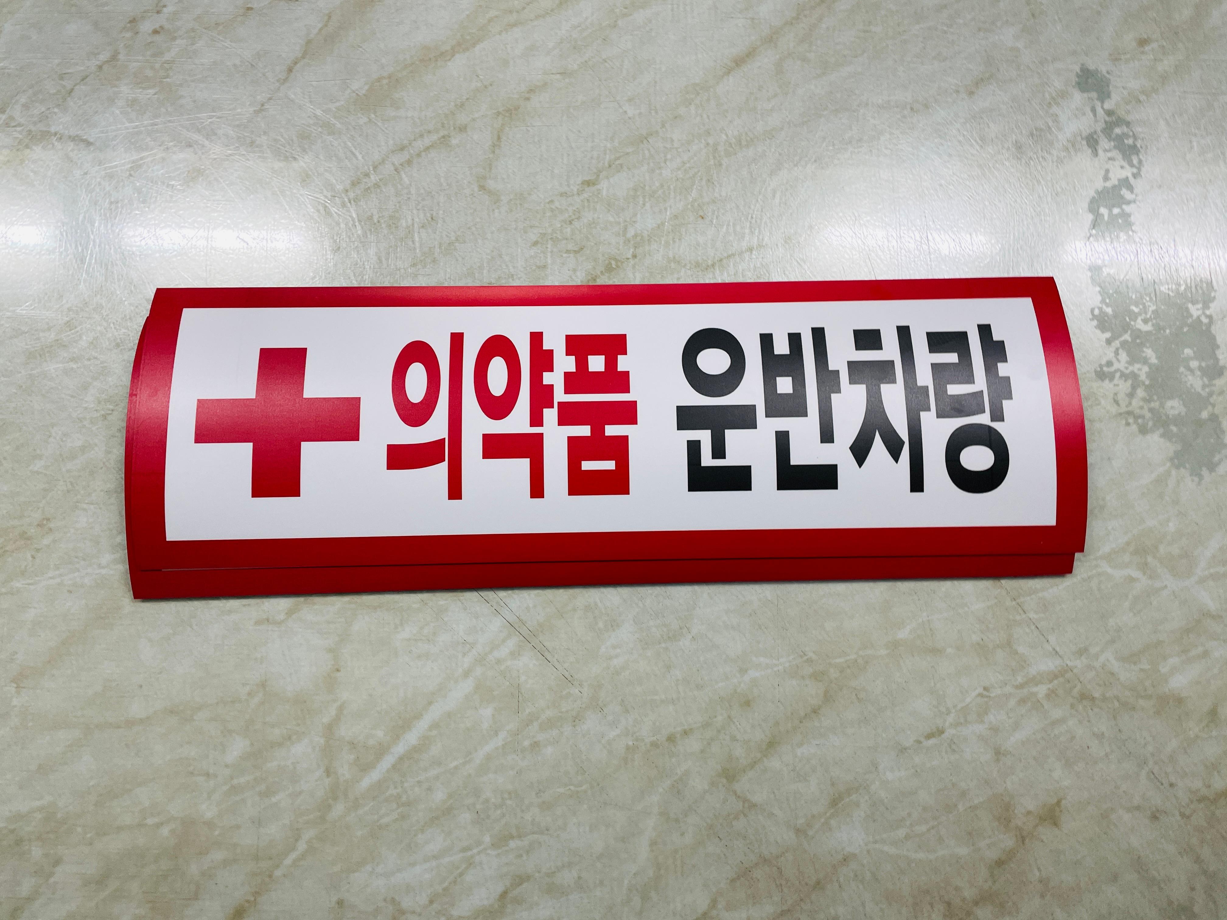 의약품 운반차량 산업스티커 표지판 자석 빨간색 테두리 의약품을 운반하는 차량을 표기를 해서 긴급 혈액 운반 및 다른 법적 지위에 대해서 알려 원활한 통행을 할 수 있도록 합니다.