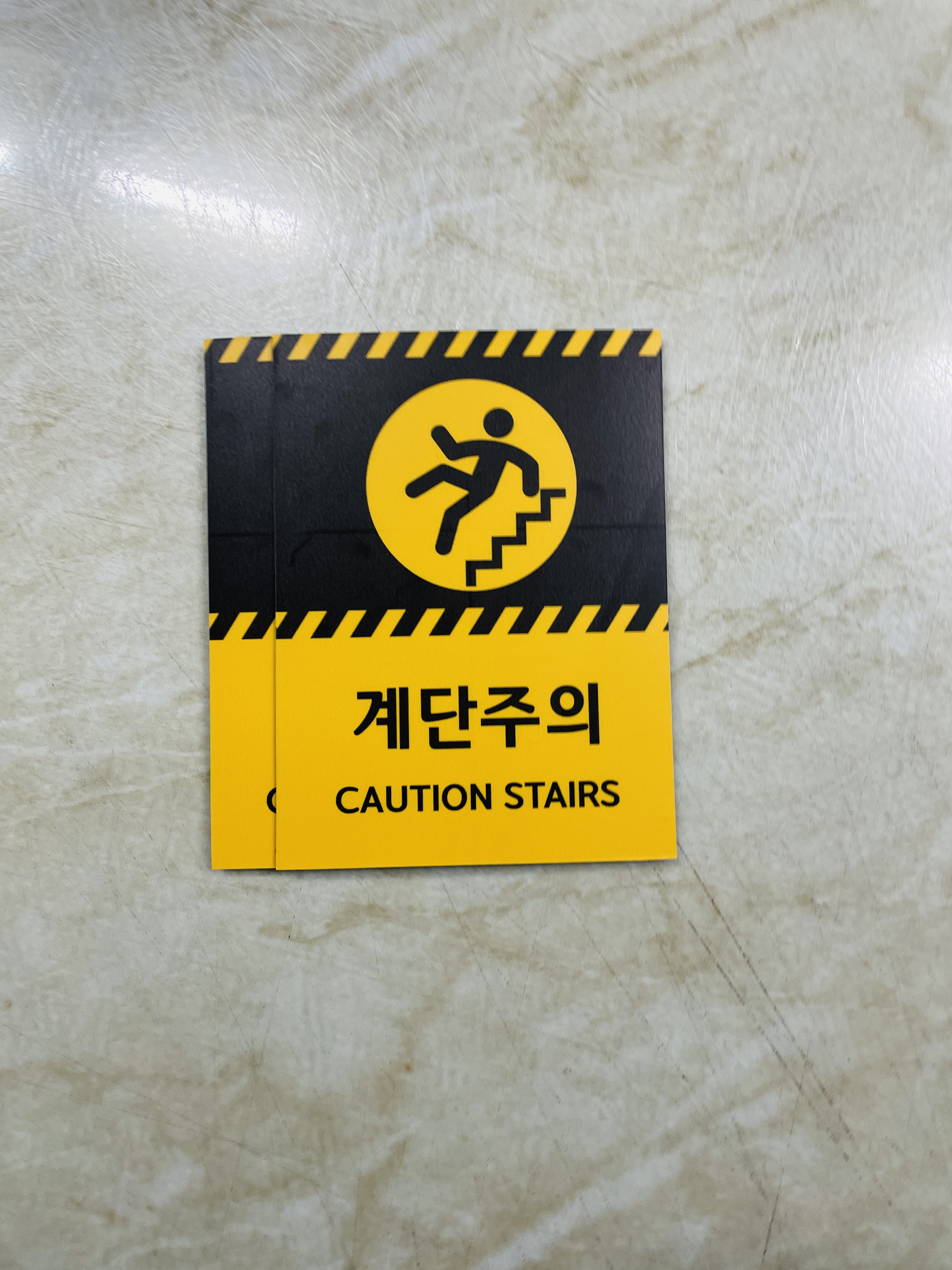 계단주의 caution stairs 산업스티커 표지판 자석 표시 계단이 있는 곳에 안전표지를 부착하여 계단에서 넘어지거나 사고를 예방합니다.