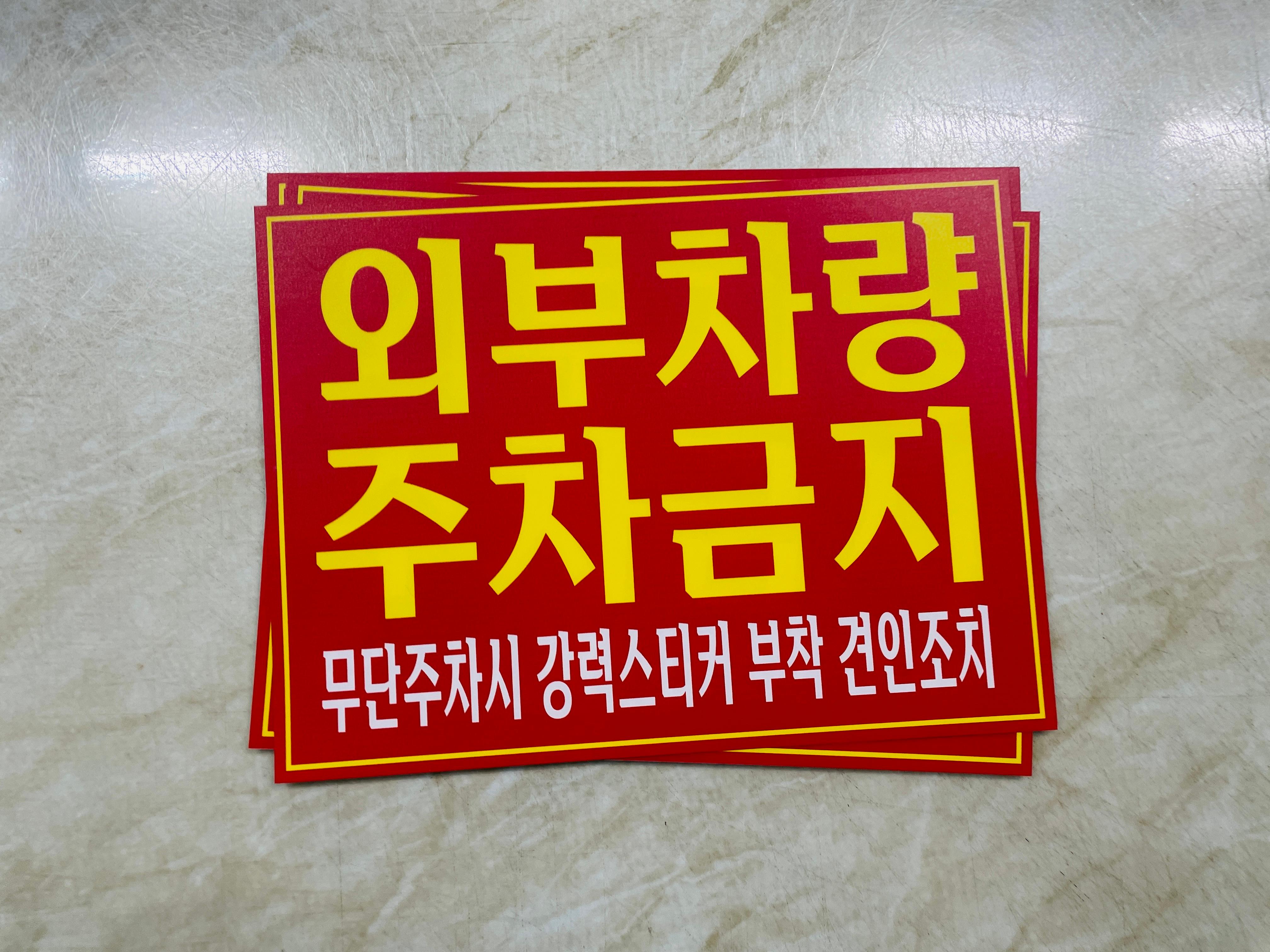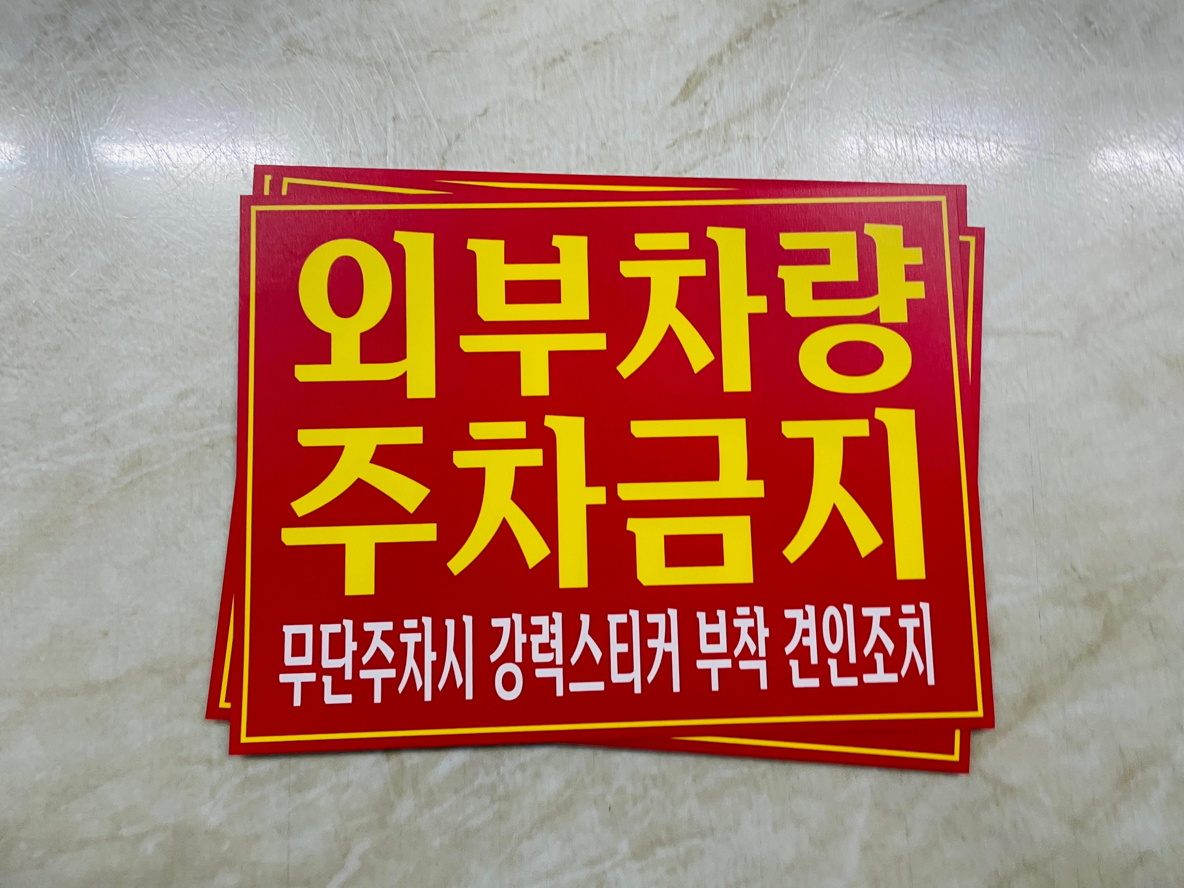 외부차량 주차금지 무단주차시 강력스티커 부착 견인조치 시설점검 안전관리 표시 스티커 표지판 자석 표시 빨간색 외부차량의 불법 주차로 인해 교통에 방해가 되는 상황을 방지하고자 표지를 부착합니다.