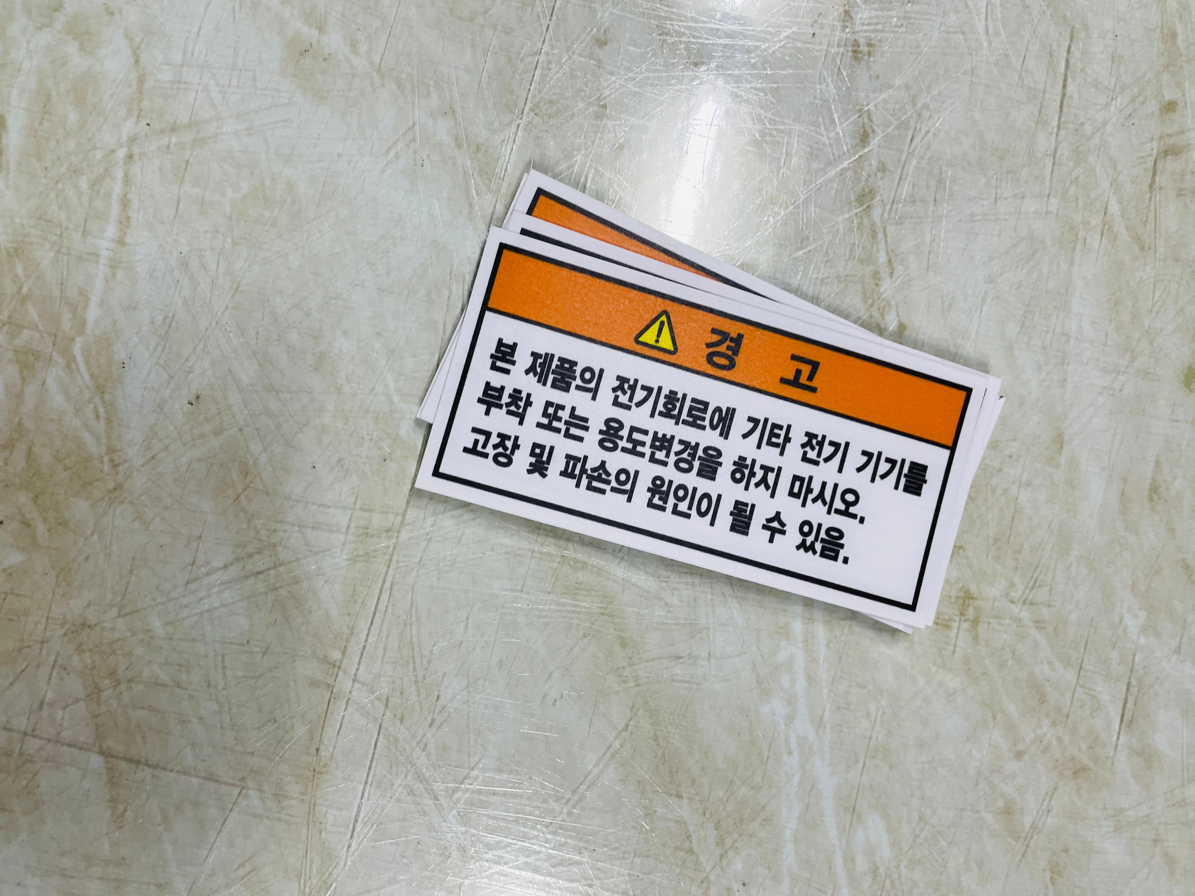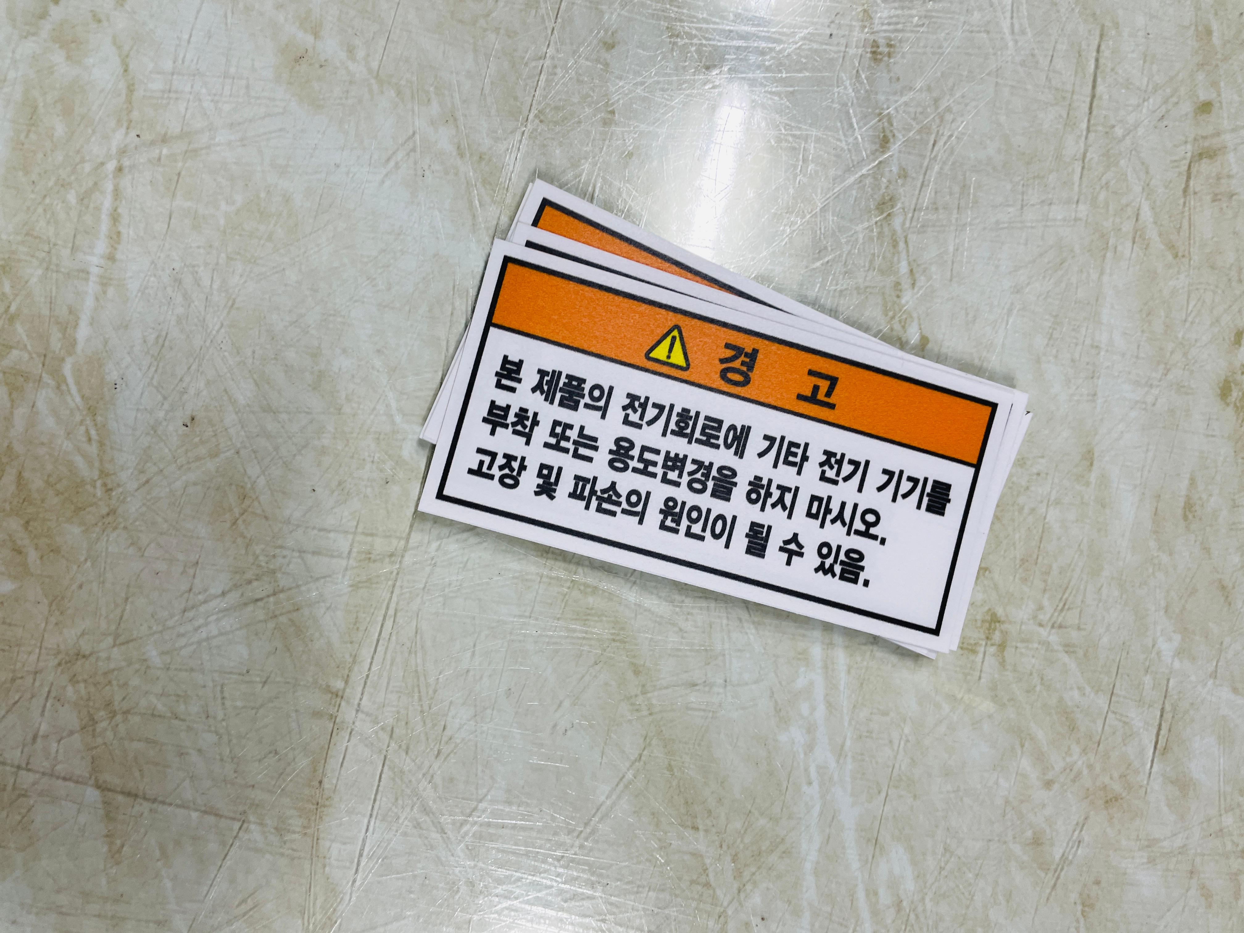 경고 본 제품의 전기회로에 기타 전기 기기를 부착 또는 용도변경을 하지 마시오 산업스티커 표지판 자석 고장 및 파손의 원인이 될 수 있음. 용도를 변경해서 사용시에 사고가 발생할 수 있기 때문에 안전표지를 부착하여 사고를 예방합니다.