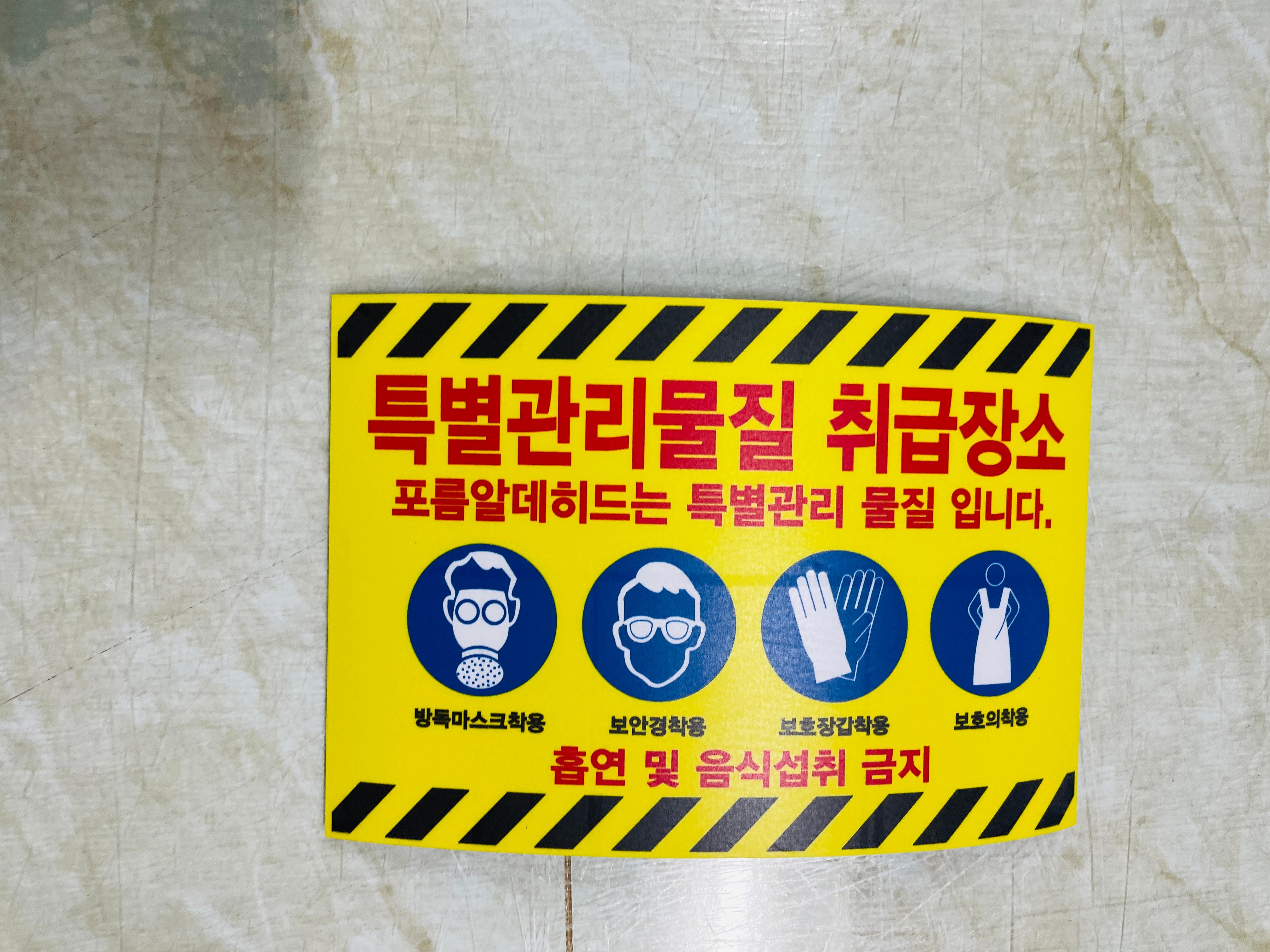6733124061 특별관리물질 취급장소 포름알데히드는 특별관리 물질 입니다 흡연 및 음식섭취 시설점