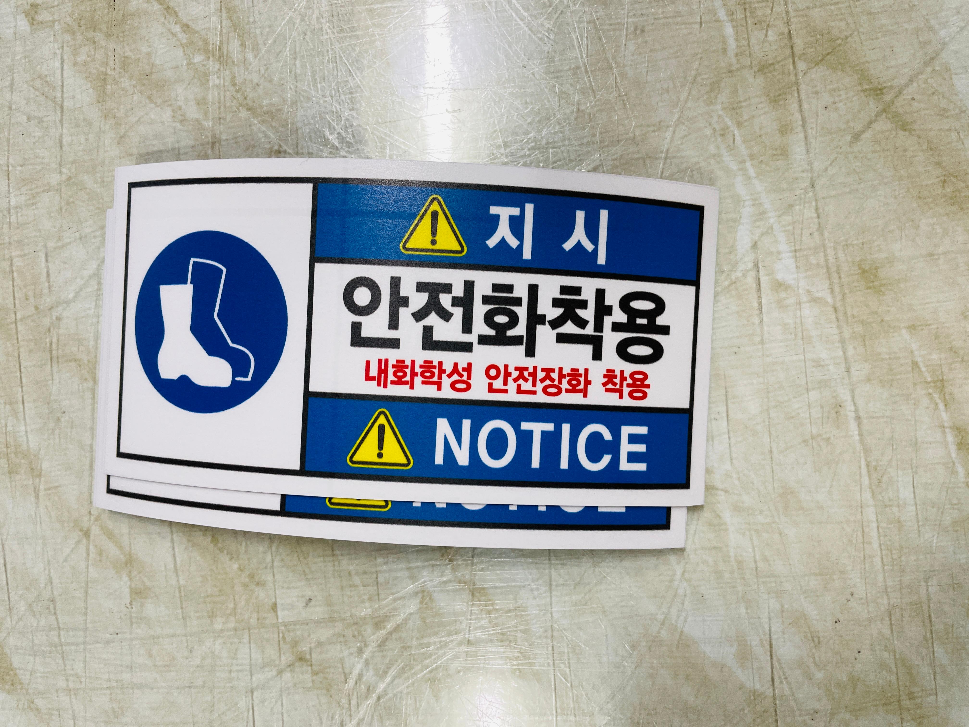 지시 안전화착용 내화학성 안전장화 착용20 산업스티커 9x4.5cm : 베사메무쵸