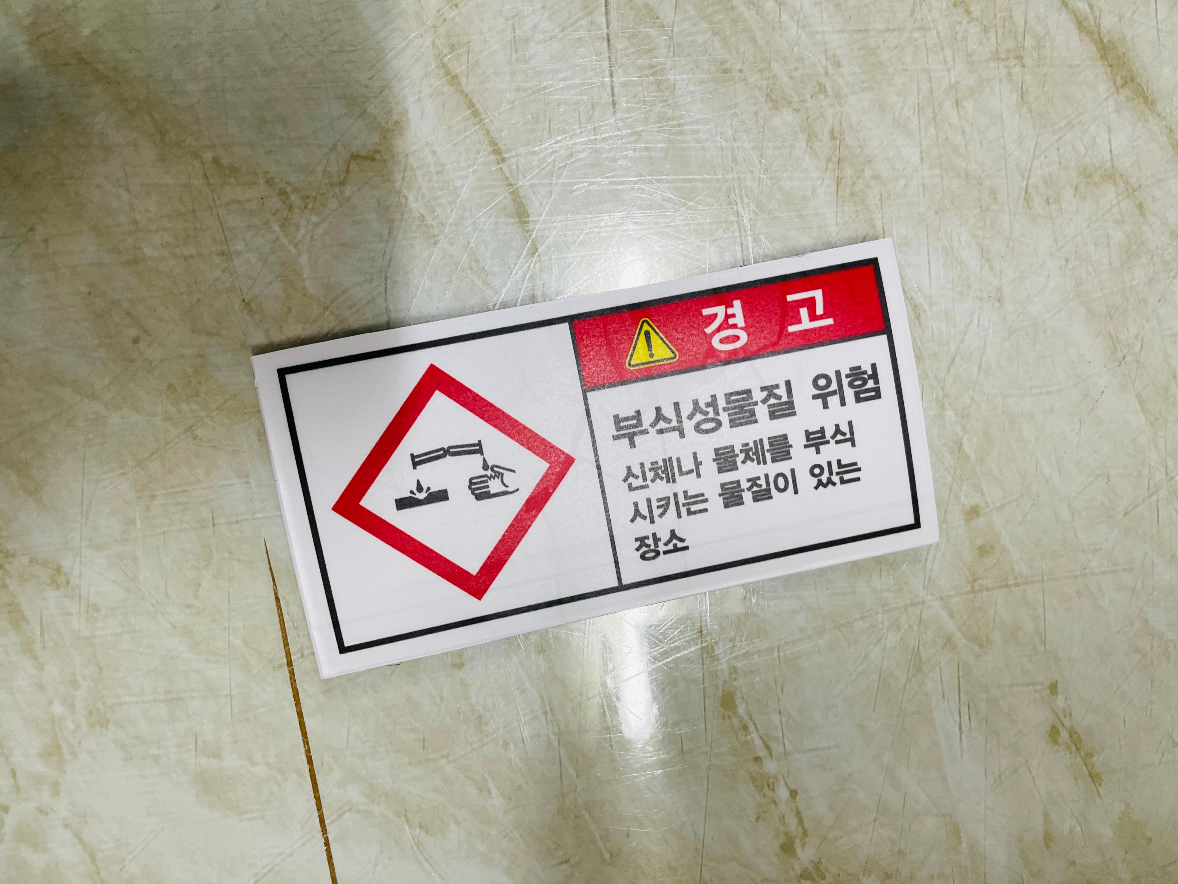 7737399404 경고 부식성물질 위험 신체나 물체를 부식 시키는 물질이 있는 장소 945 안전 시설점검