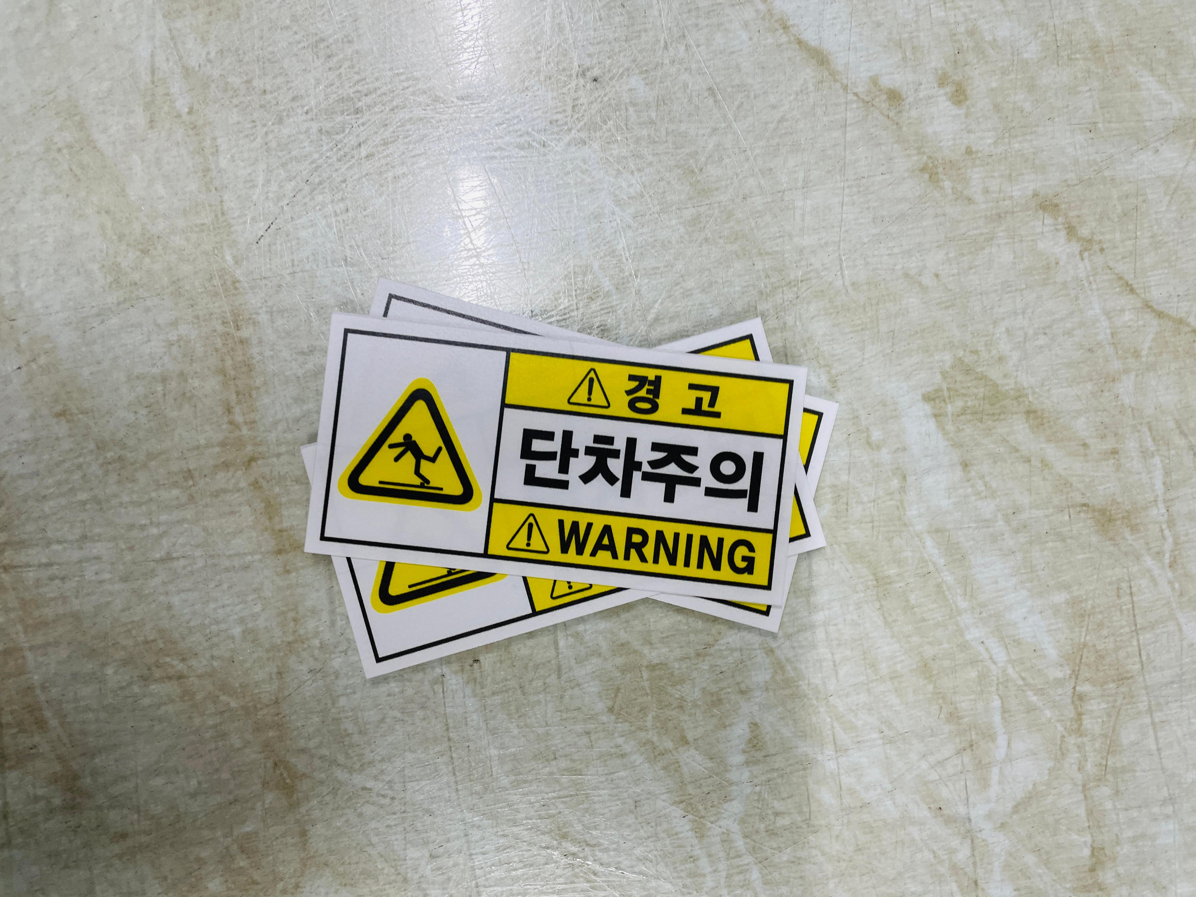 경고4 단차주의 산업스티커 9x4.5cm : 베사메무쵸