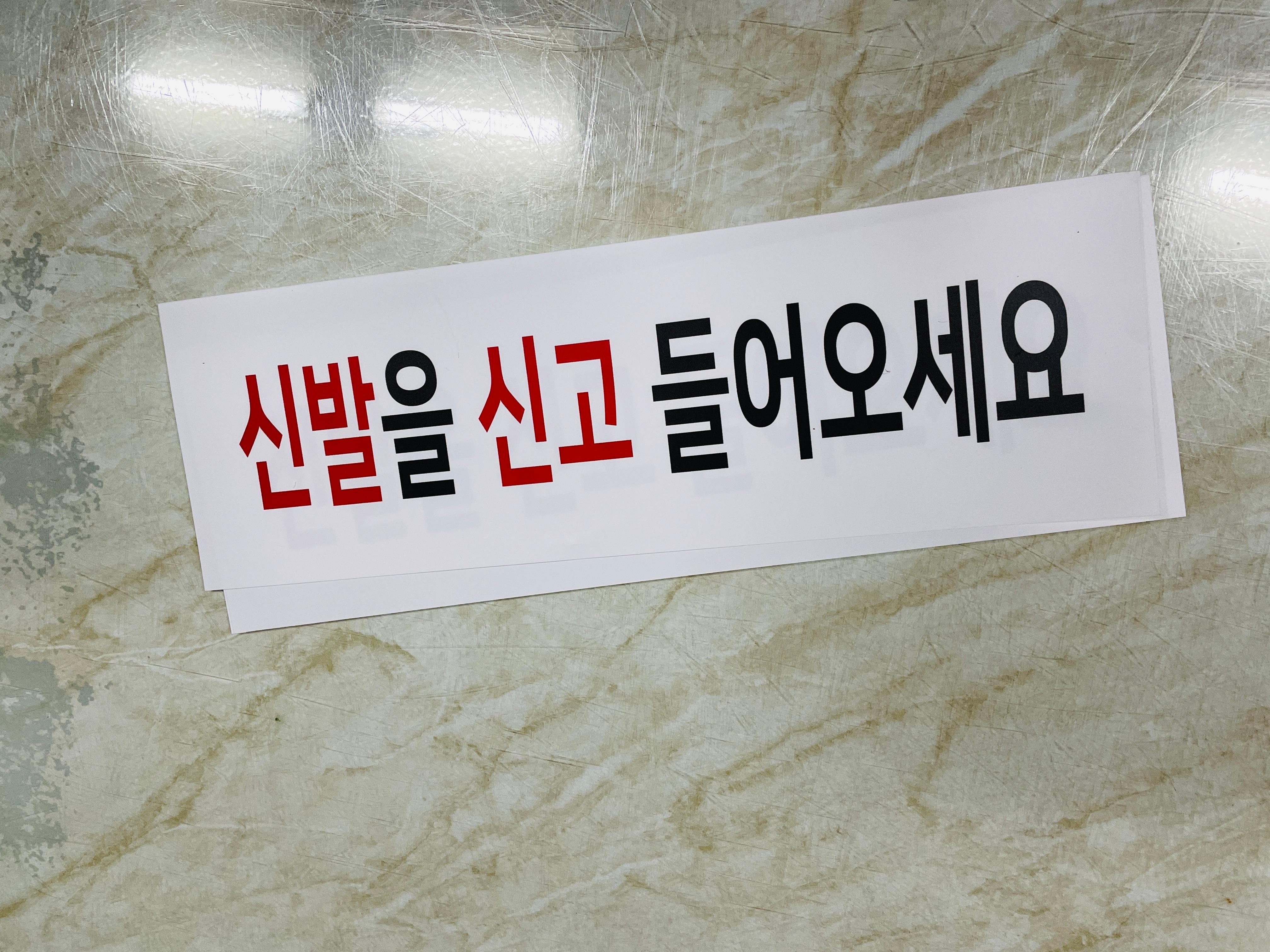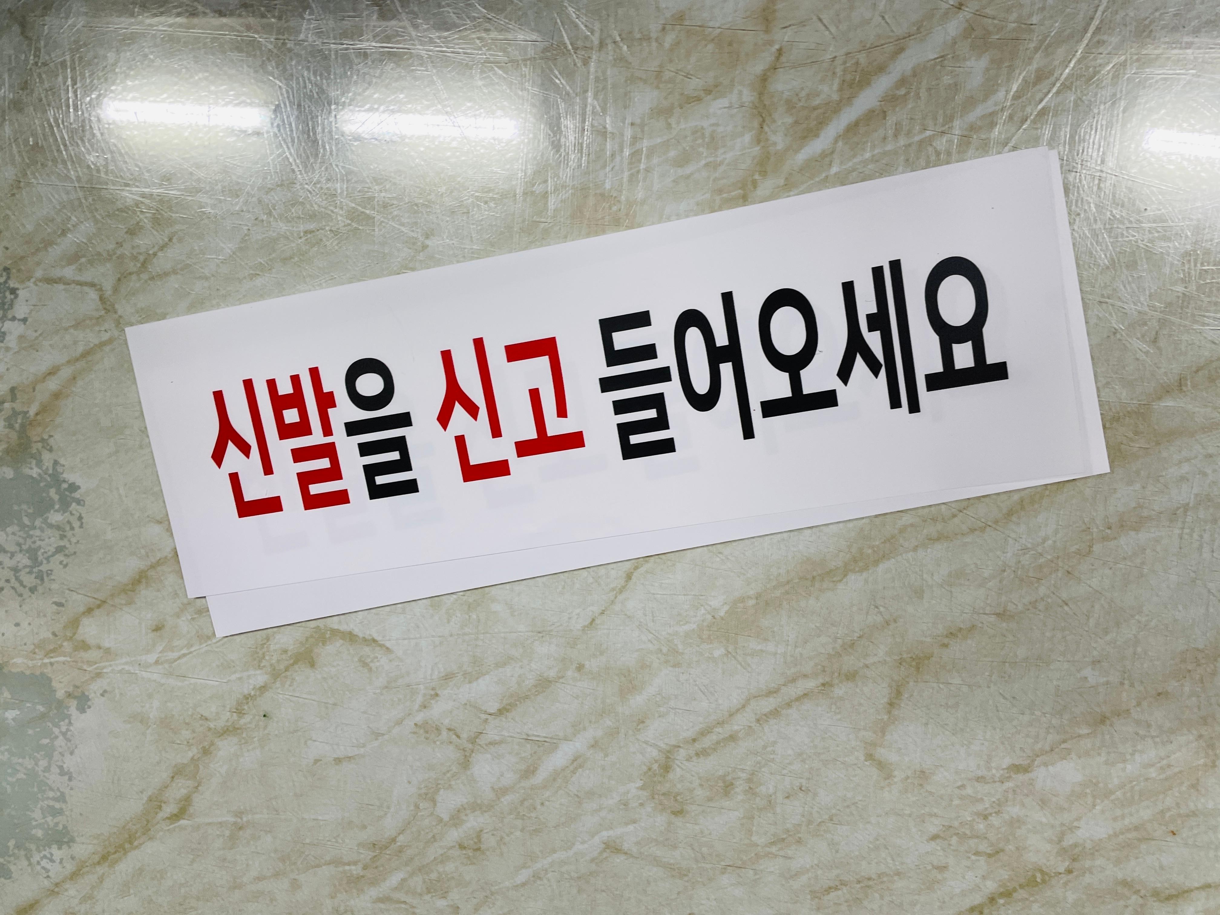 신발을 신고 들어오세요 산업스티커 15x5cm : 베사메무쵸