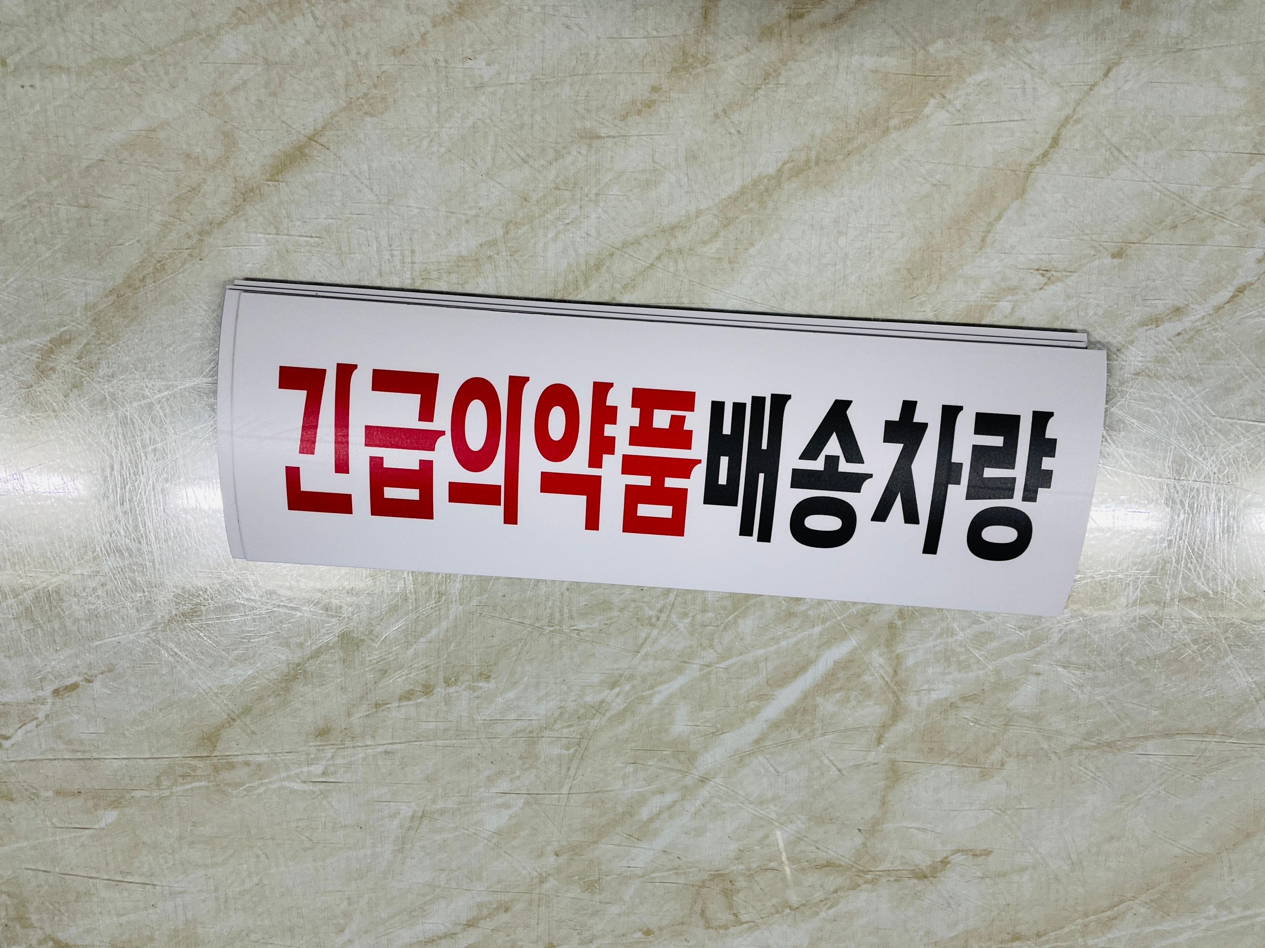 긴급의약품배송차량 안전관리 표시 스티커 표지판 자석 안전한 의약품 배송을 위해 차량에 표지를 부착하여 다른 운전자에게 긴급차량인것을 알 수 있도록 합니다.