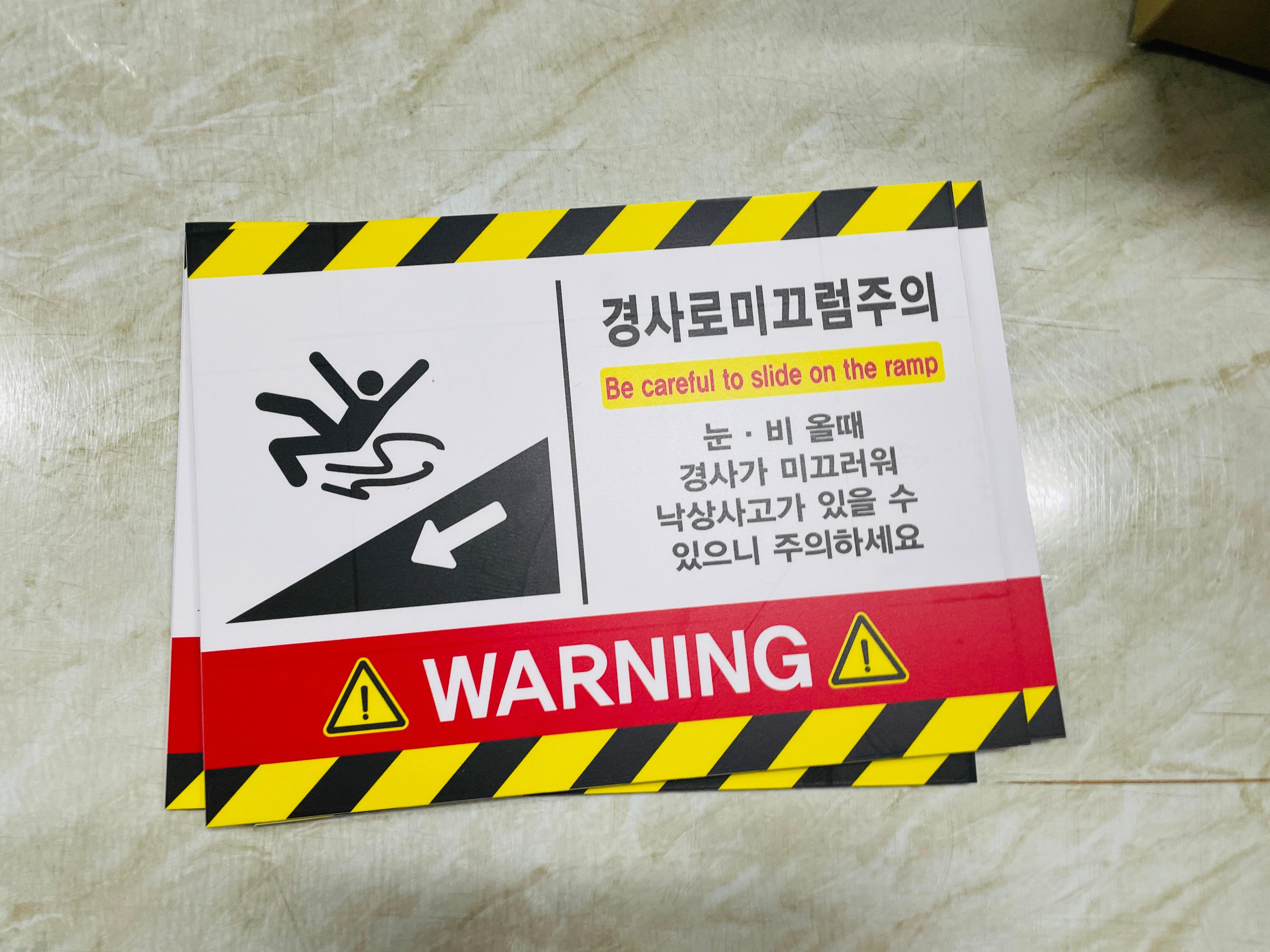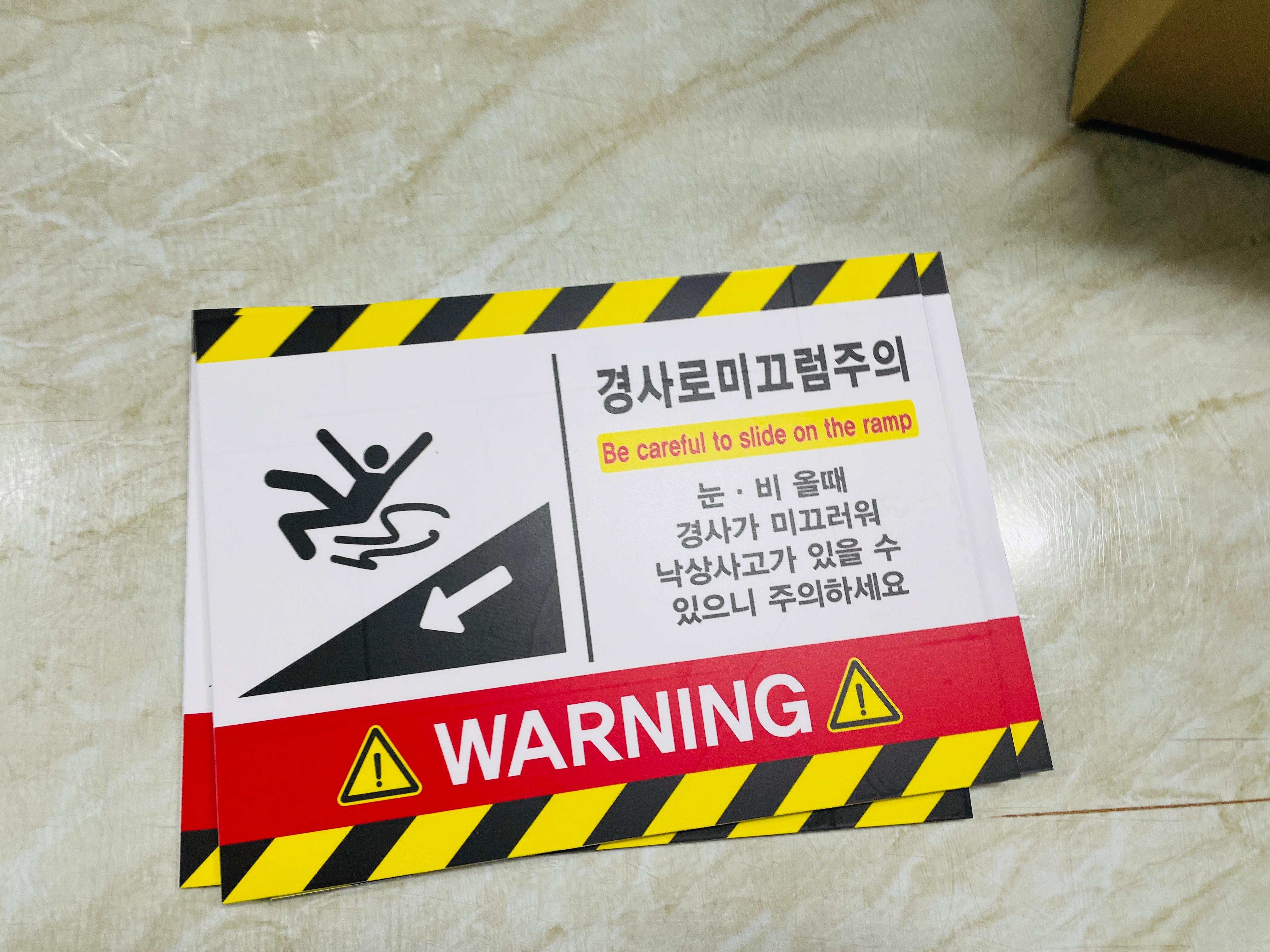 9645427142 경사로미끄럼주의 Be careful to slide on the ramp 가로 산업스티커 표지판 자석 20x27cm - 베사메
