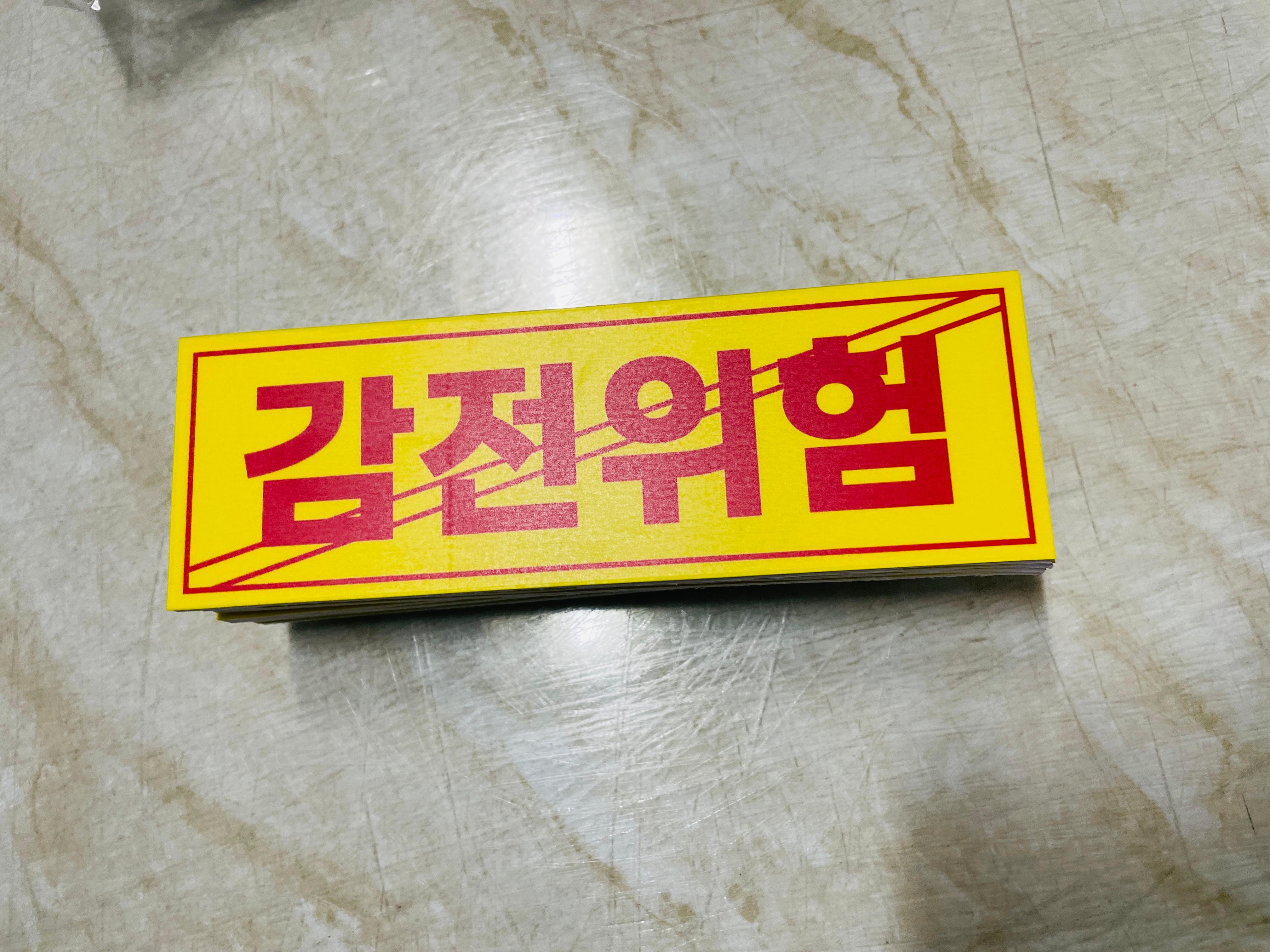 감전위험 사선 노란색바탕 스티커 표지판 자석 감전위험이 있는 장소에 안전표지를 부착하여 사고를 예방합니다.