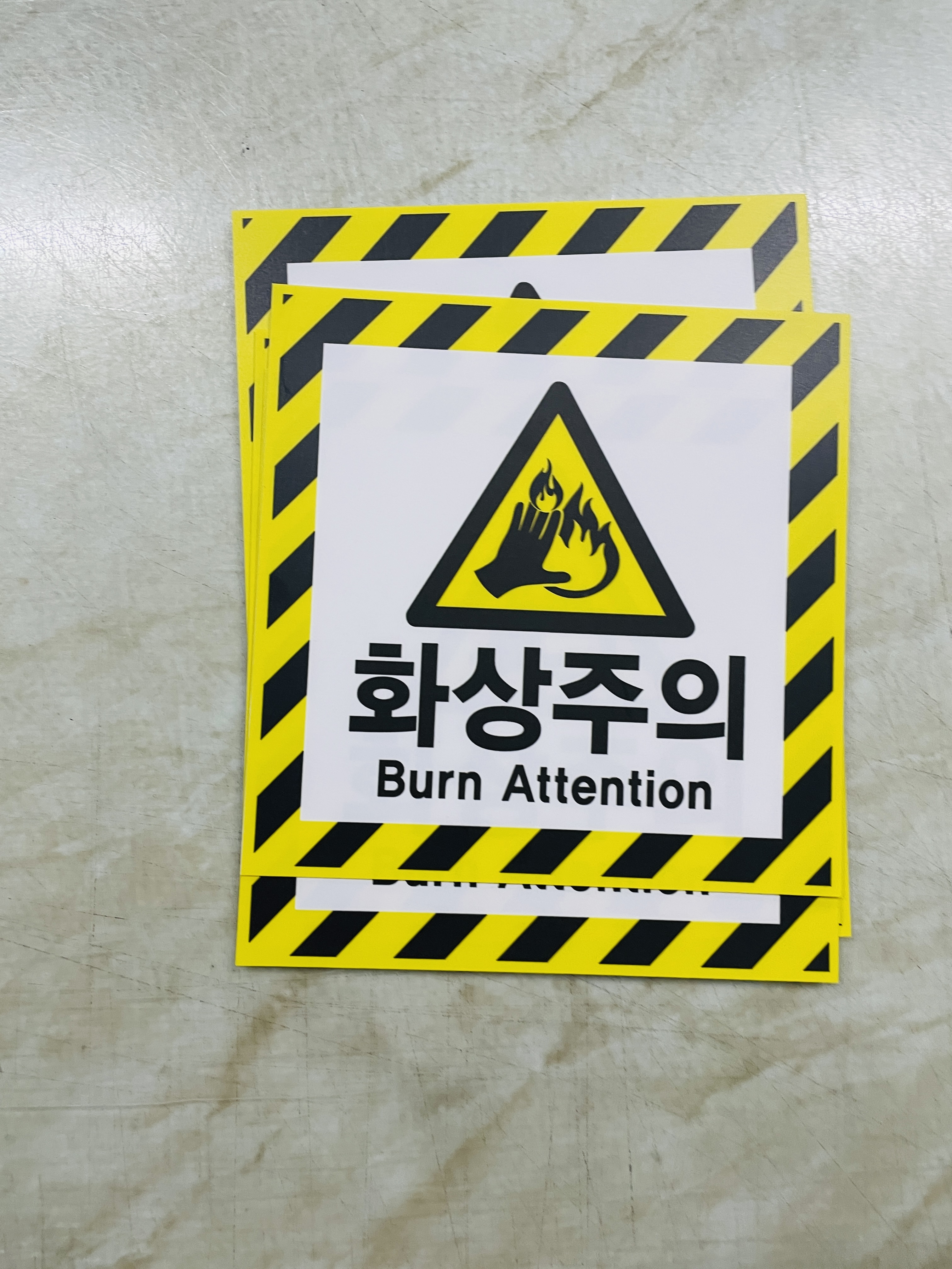 7819718510 화상주의 Burn Attention 안전관리 표시 스티커 표지판 자석 5x5cm | 베사메무쵸