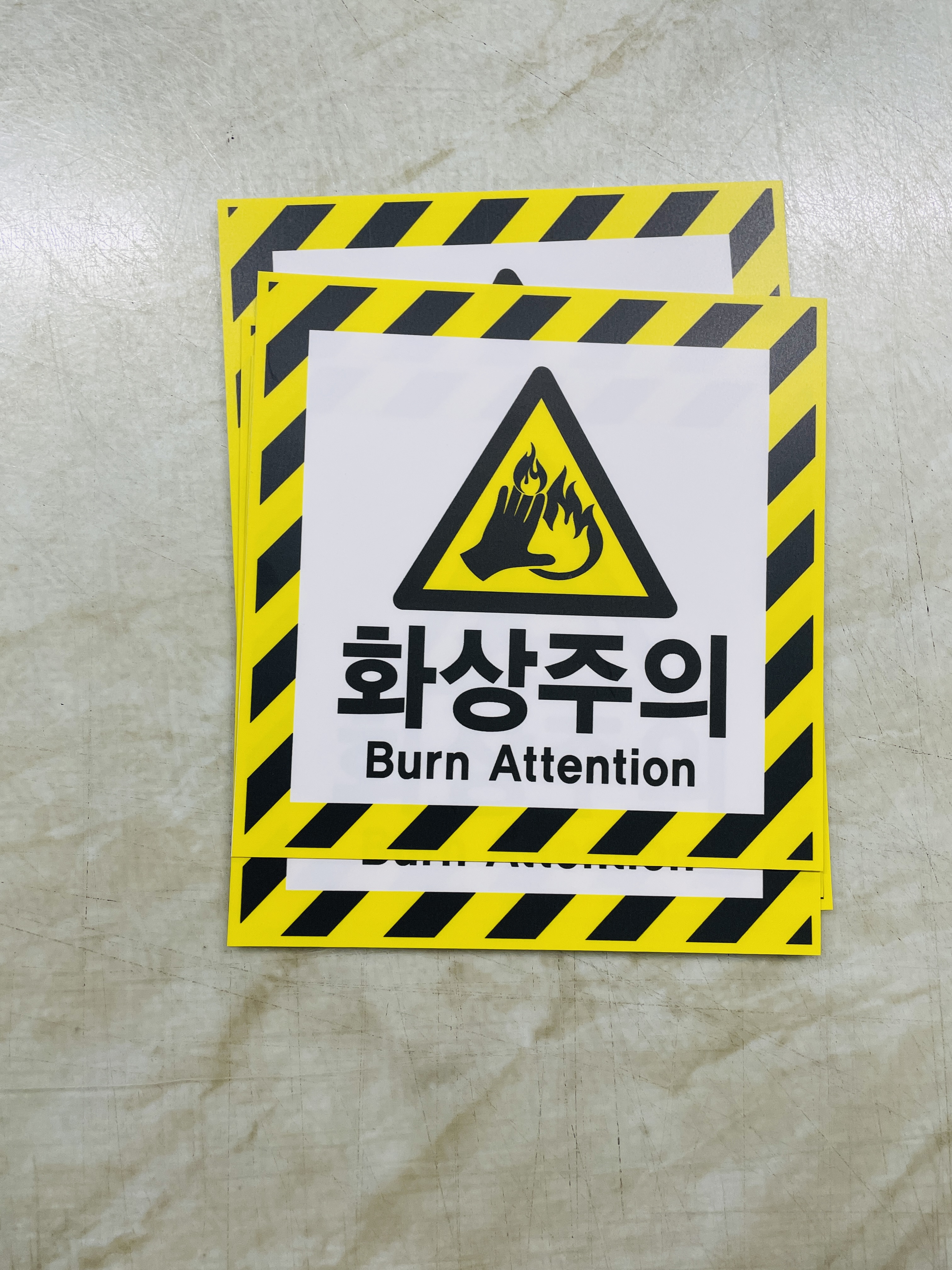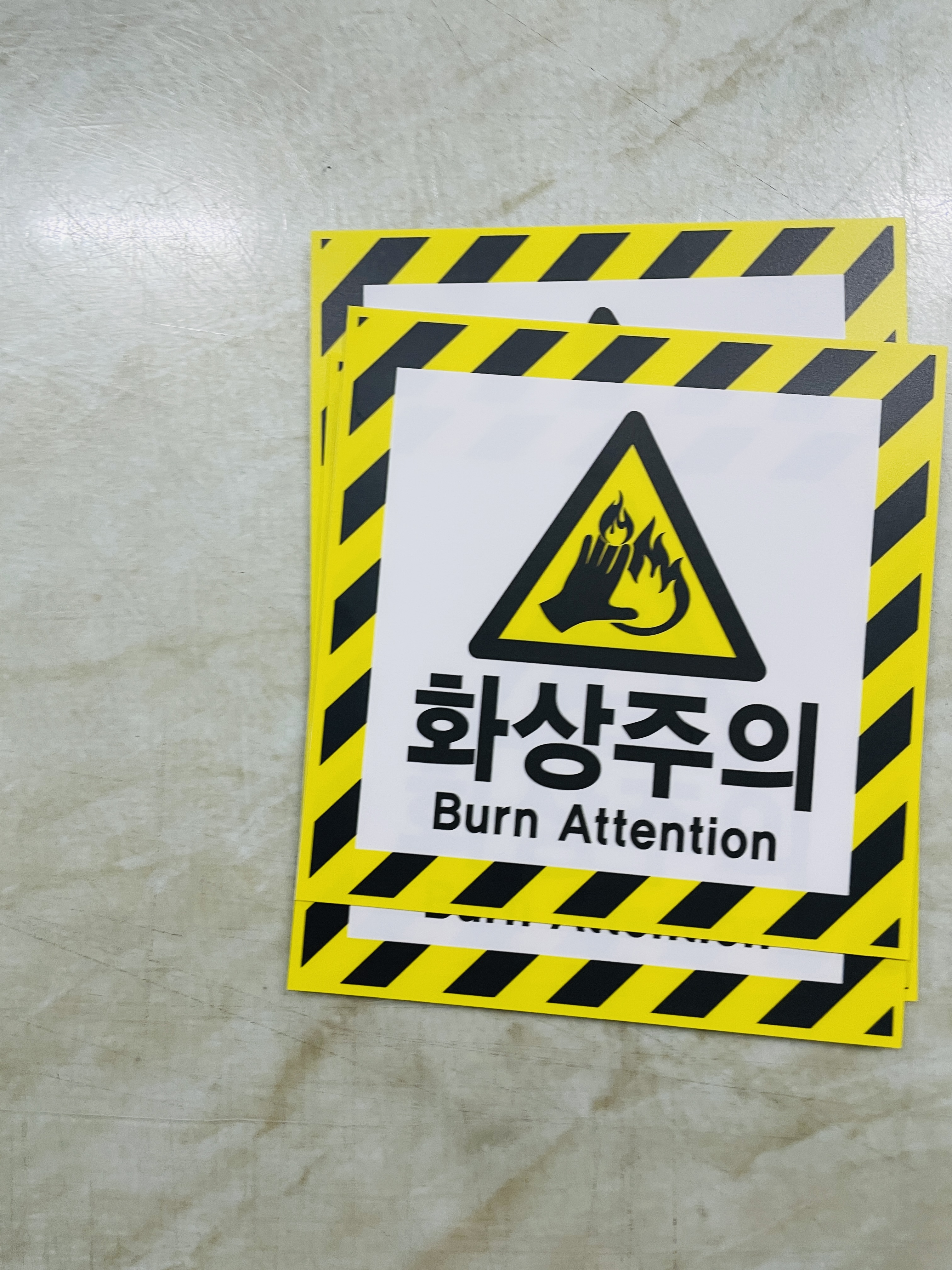 화상주의 Burn Attention 안전관리 표시 스티커 표지판 자석 화상사고를 예방하기 위해 작업공간 주변에 안전표지를 부착합니다.