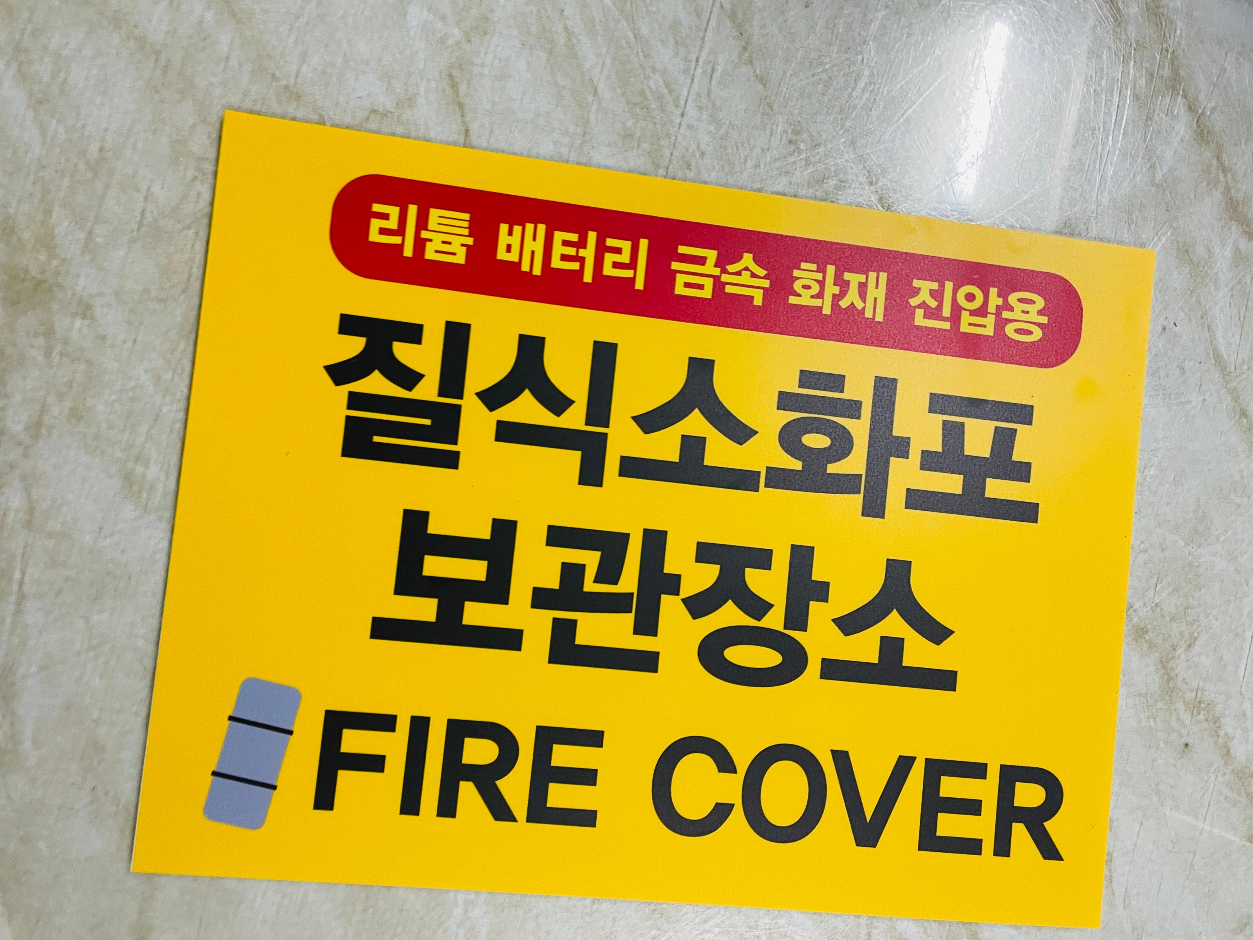 리튬 배터리 금속 화재 진압용 질식소화포 보관장소 보관장소 FIRE COVER AD077 8562441634 스티커 표지