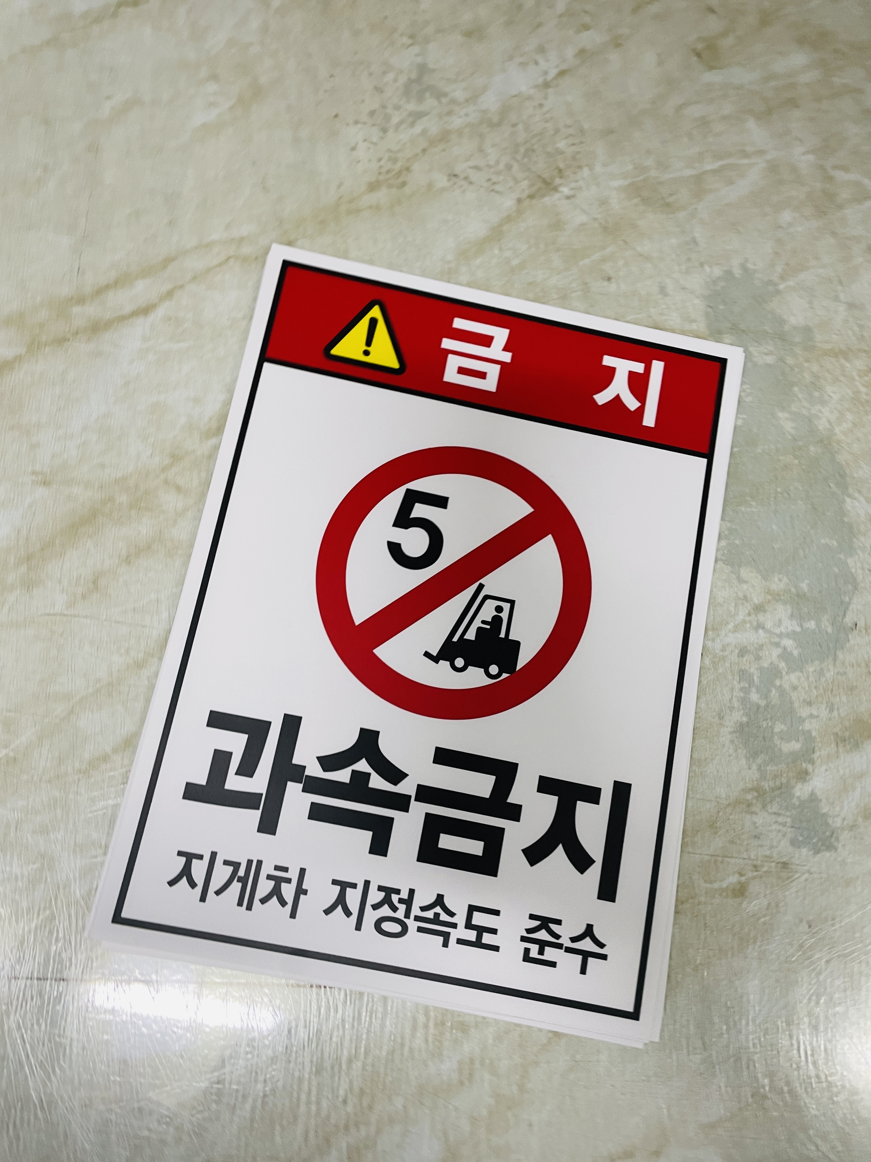 과속금지 지게차 지정속도 준수 5km 산업스티커 표지판 자석 안전을 위해 지게차가 과속하지 않도록 이동 구간에 안전표지를 부착합니다.