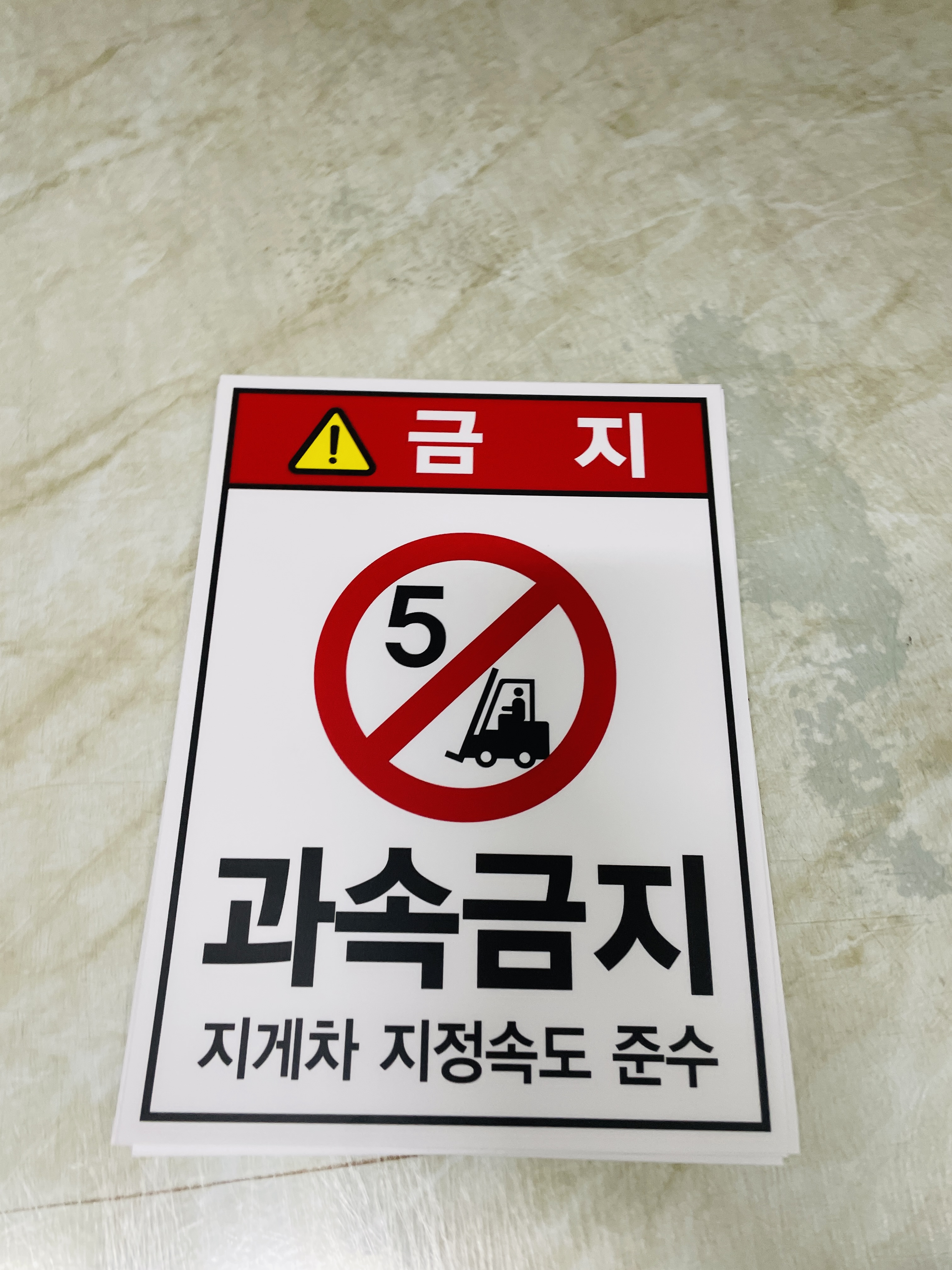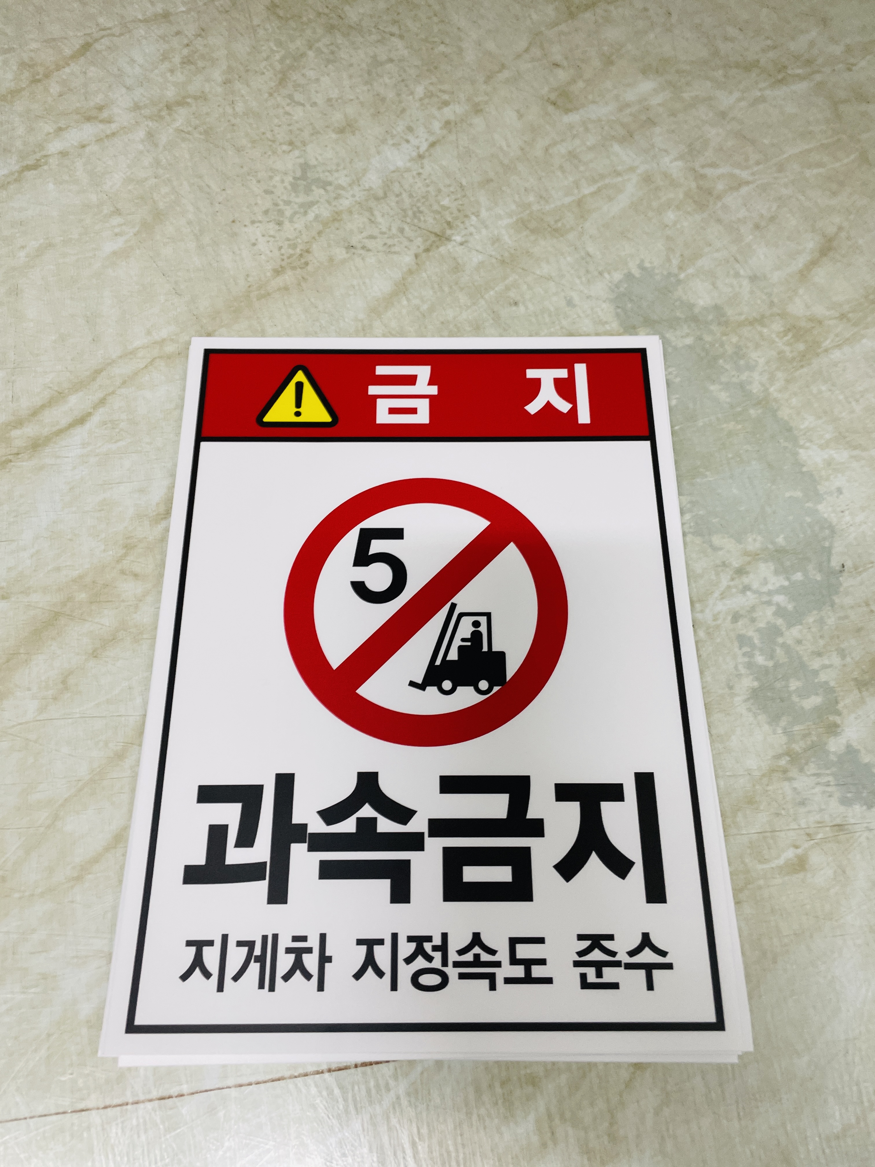 과속금지 지게차 지정속도 준수 산업스티커 20x27cm : 베사메무쵸