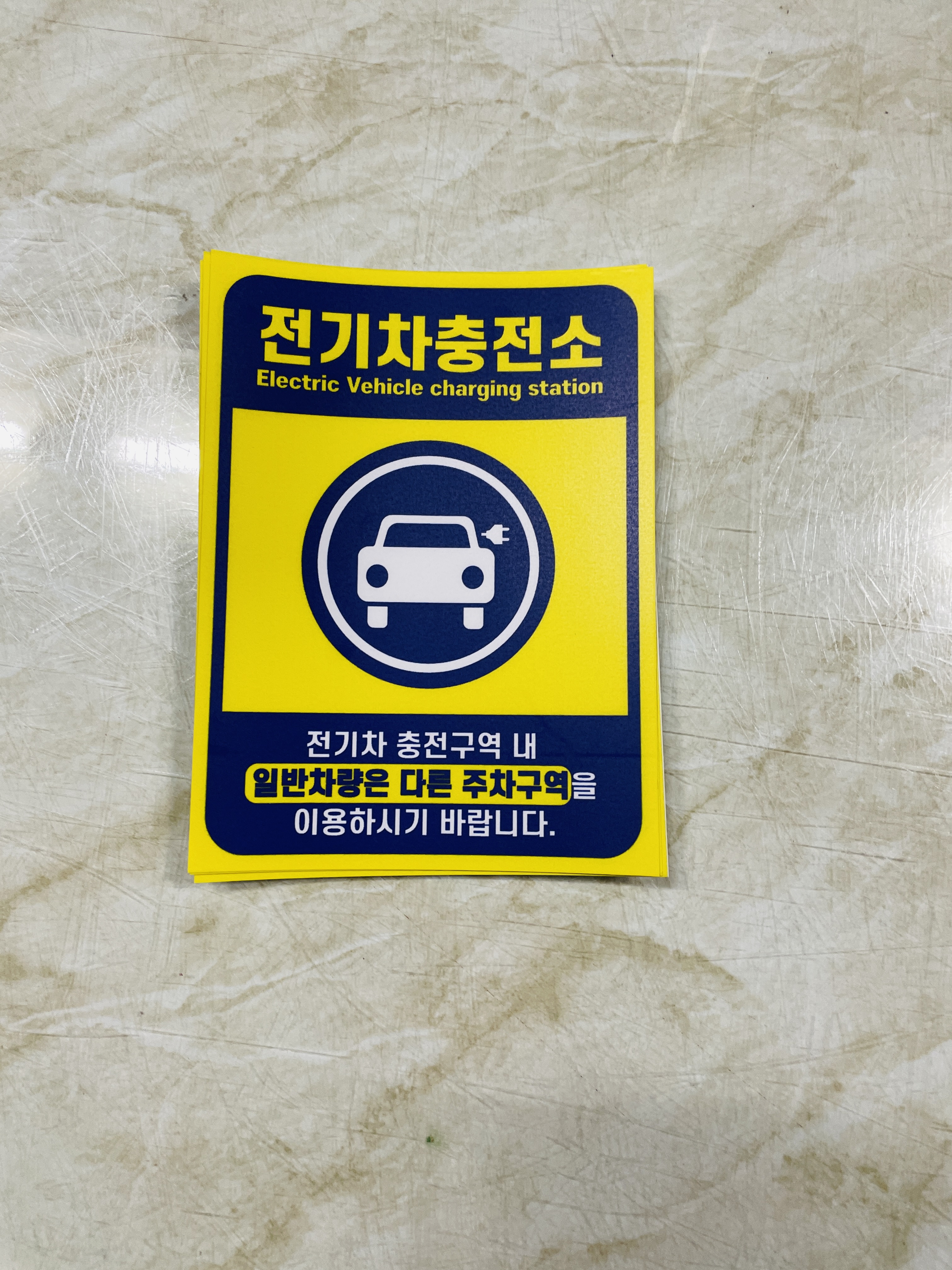 전기차충전소 전기차 충전구역 내 일반차량은 다른 주차구역 노랑파랑 산업스티커 표지판 자석 전기차 전용 주차 공간에 안전표지를 부착하여 전기차가 주차할 수 있도록 합니다.