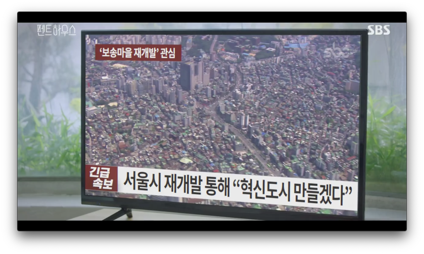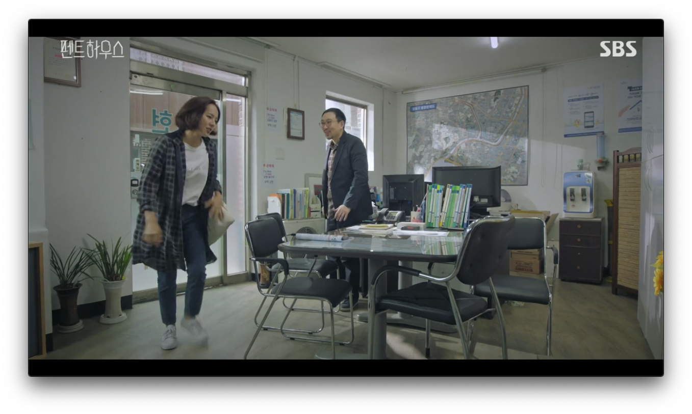 그시각 오윤희도 매매 계약을 하기 위해서 가는데 물을 맞고 언덕을 올라가는 할머니를 도와주고 간다고 조금 늦게 부동산에 갑니다. 이규진은 빨리 안와서 답답해 하다가 오윤희가 오는 모습을 보고 사장 책상 밑에 숨었습니다. 그리고 오윤희는 자리에 앉아 매매 계약서에 도장을 찍으려는 순간 아이가 티비를 키는데 뉴스가 보송마을 재개발한다는 내용을 듣고 도장은 안찍고 살았다고 부자 되었다고 소리칩니다.