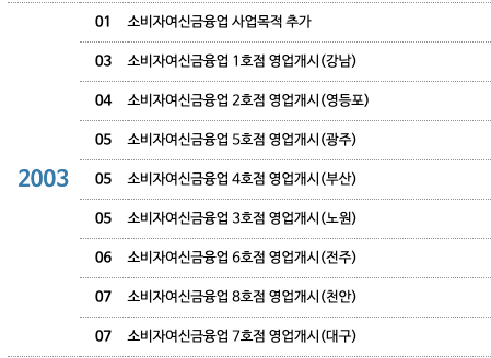 리드코프를 대부분 알고 있는 금융사업은 2003년에 사업목적 추가해서 소비자여신금융업 1호점부터 7호점까지 영업 개시를 시작했습니다.