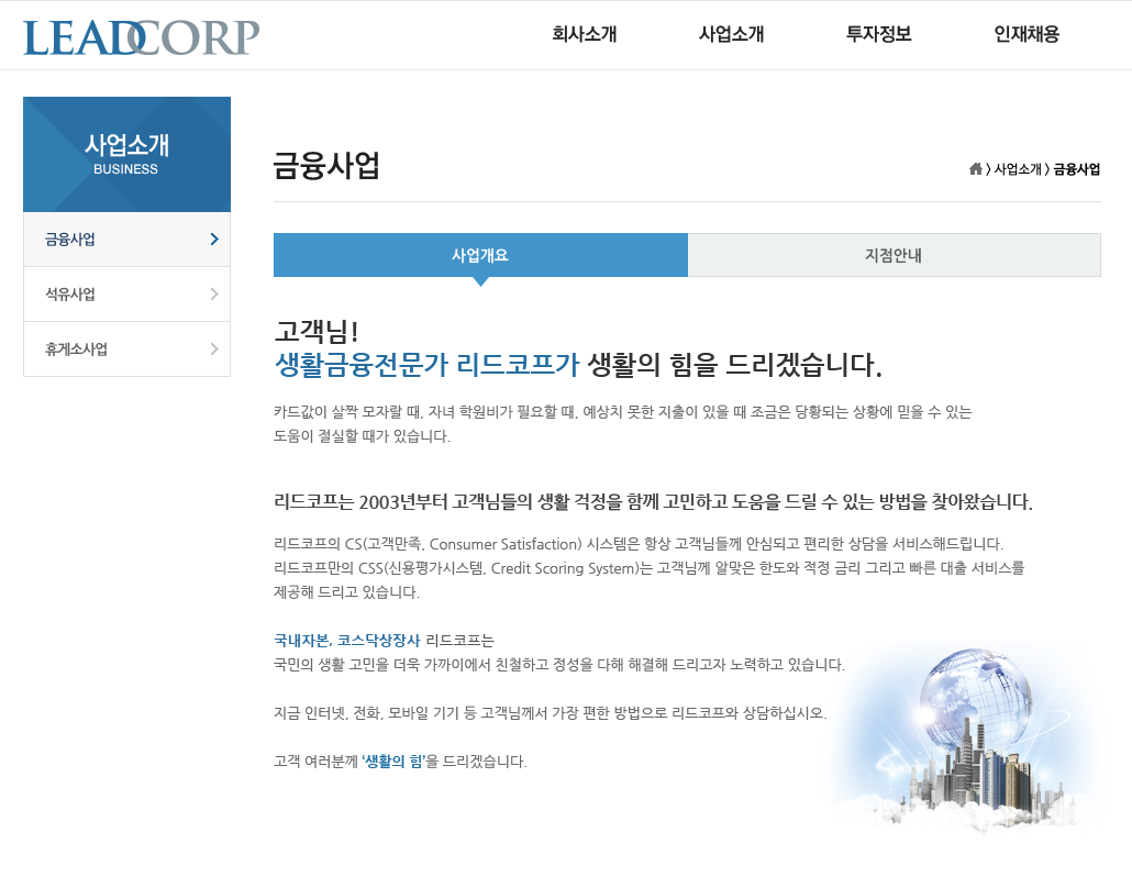 2000년 이후부터 리드코프는 여신금융으로 사업이 확정하여 대출은 리드코프 광고도 나왔기 때문에 다 알고 있으시지만 한번더 말씀드렸습니다.