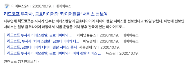 2020년 10월 리드코프는 타이어 렌탈 서비스로 사업 다각화를 진행하고 있습니다.