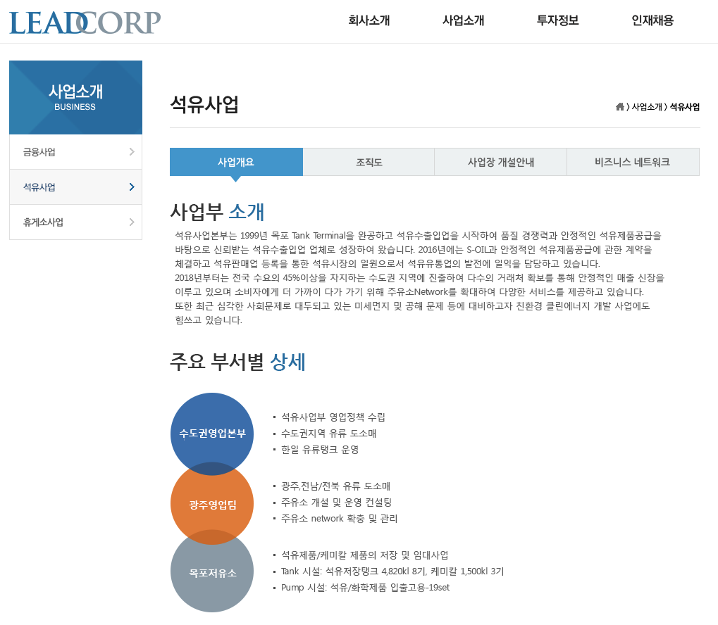 리드코프의 처음 시작인 동양특수유조(주)로 시작된 석유사업부문은 지속적으로 진행되어 있습니다.