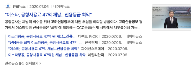 고려신용정보 최근 뉴스를 한번 찾아 봤습니다. 2020년 7월 이스타 공항사용료 47억 체납액을 회수하기 위해서 고려신용정보에 채권 추심을 의뢰할 방침이다라는 기사제목과 내용이 있습니다.