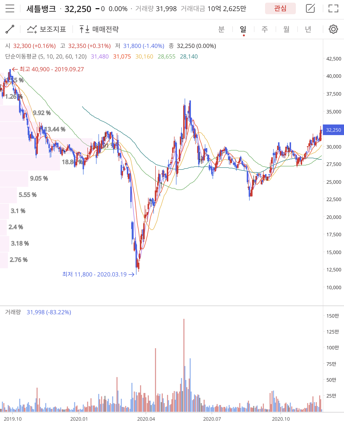 이번 시간은 세틀뱅크(234340)종목에 대해서 알아보는 시간입니다. 2020년 3월 19일 COVID-19 저점 11,800원을 찍고 아직 전고점을 못찍은 종목입니다.
