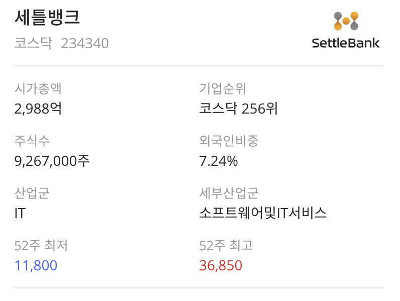 여기까지 준비한 세틀뱅크 종목정보였습니다.