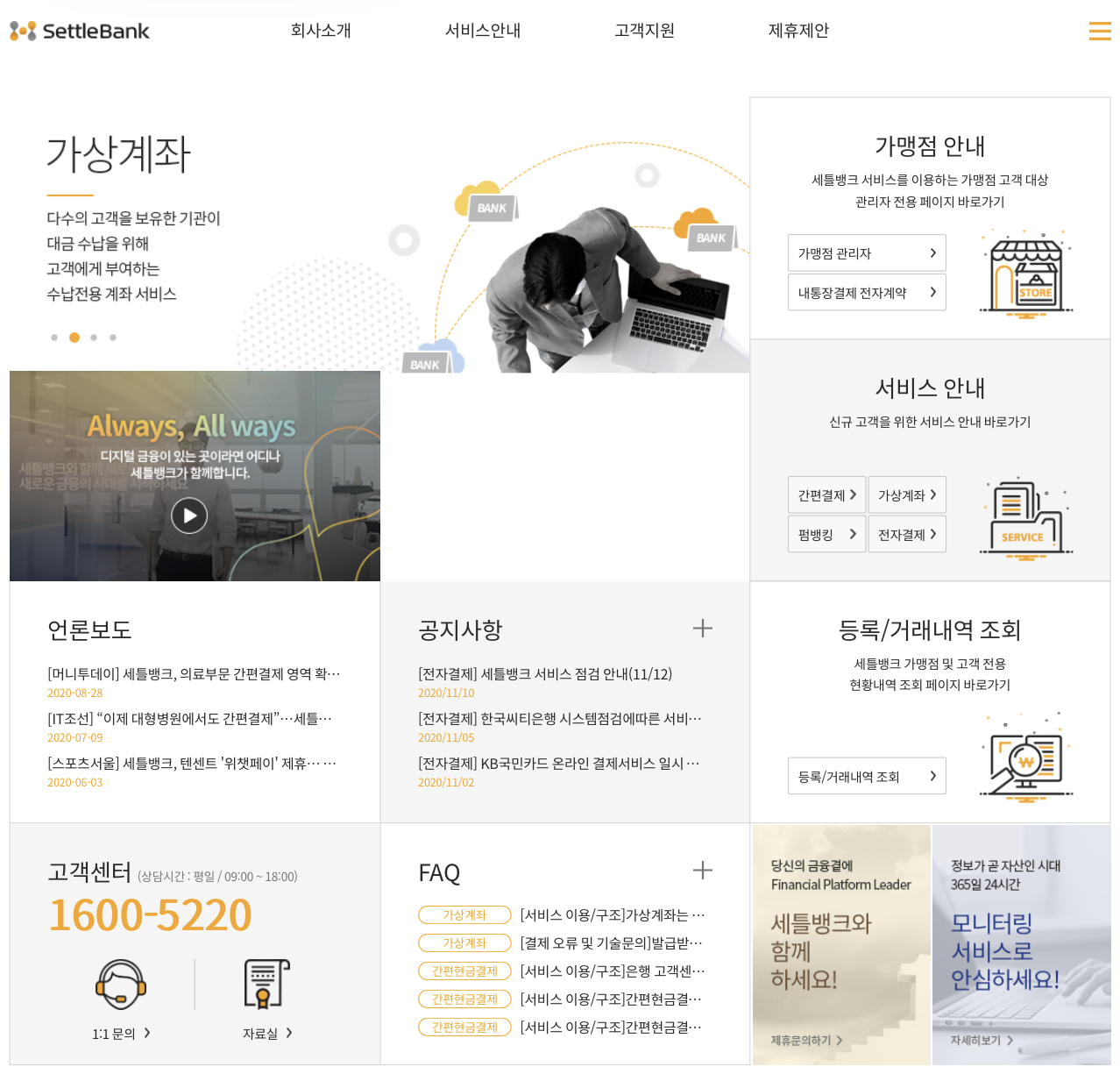 세틀뱅크의 서비스와 주요 고객사를 확인해 보겠습니다.