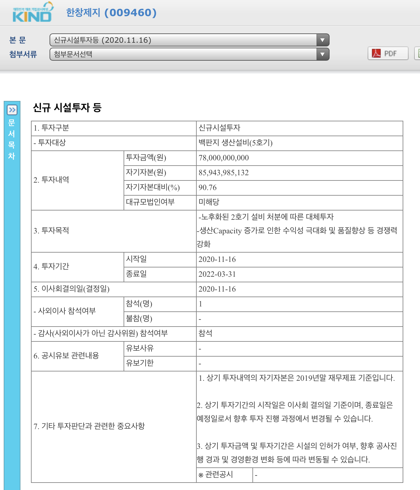 한창제지 뉴스기사도 같이 준비 했습니다.