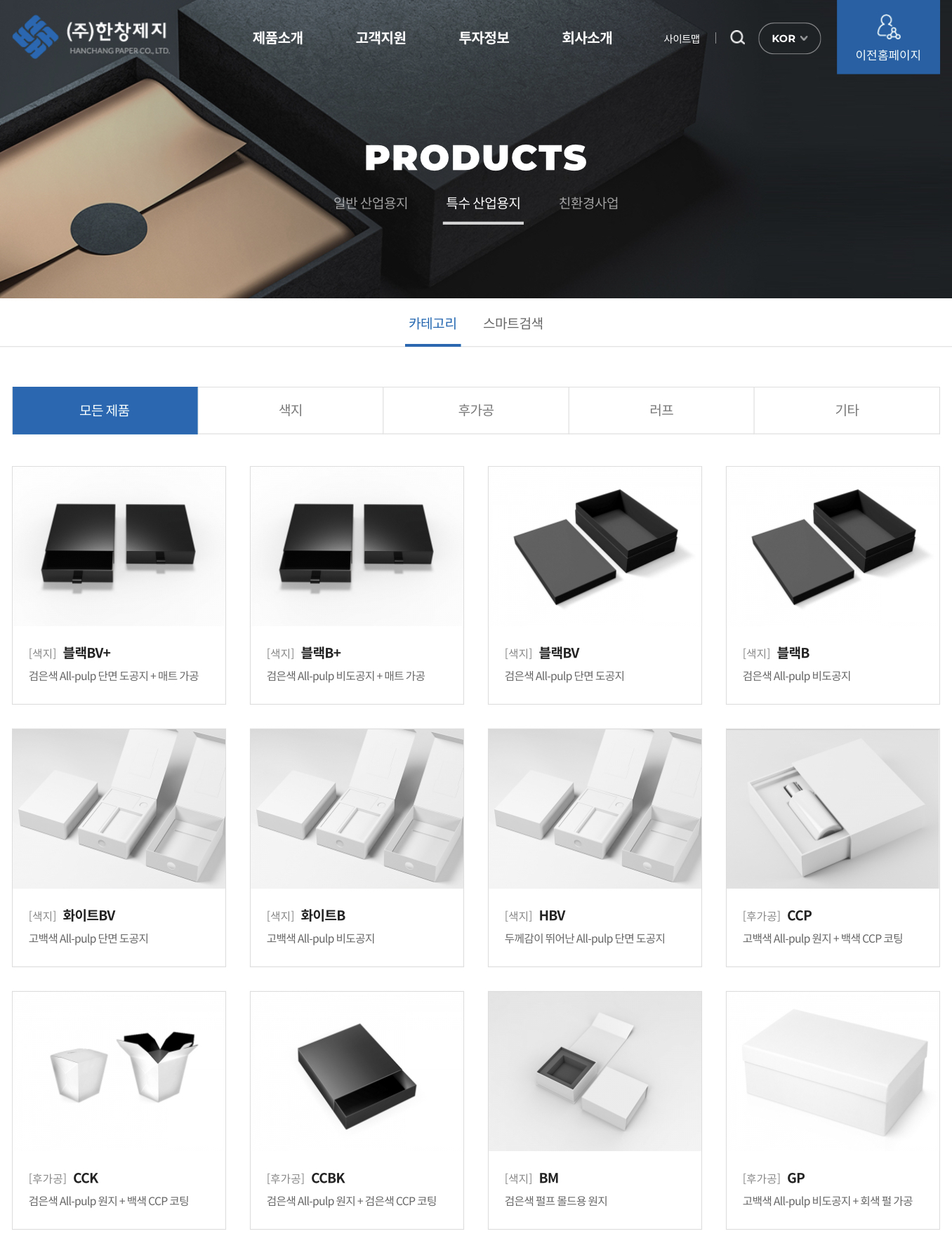 한창제지의 제품을 확인해 보겠습니다.