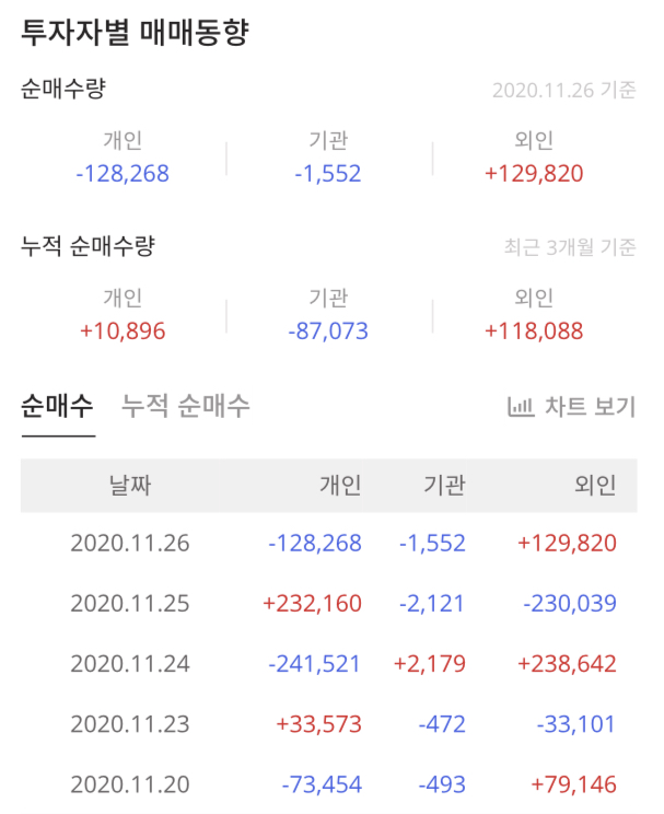 한창제지(009460)의 투자자별 매매동향은 3개월 누적 순매수량은 외인과 개인이 매수 기관은 매도 포지션입니다.