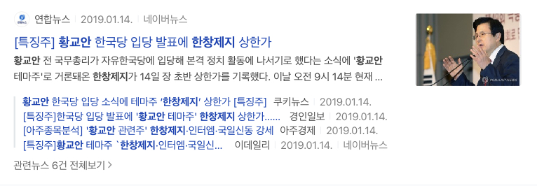 그리고 황교안 테마주에 한창제지가 있는 이유는 한창제지 경영진과 황교안이 성균관대학교 동문이라는 이유라서 분류가 된듯 하며 이완구 테마도 인맥으로 분류가 된 듯 합니다.