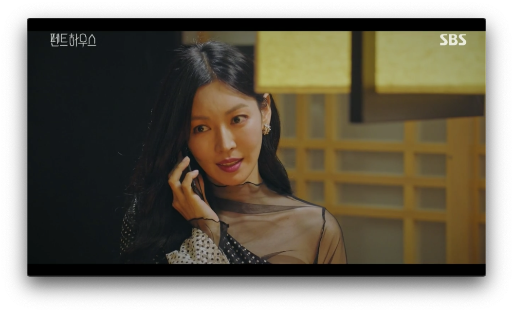 하윤철은 혼자 사무실에서 아내 천서진의 불륜사실과 예약문자 내용을 생각하고 있습니다. 결국 하윤철이 움직입니다. 그 시각 천서진은 하윤철이 알고 있는지도 모르고 예약한 식당에 도착해서 주단태에게 전화해 어디냐고 물어봅니다. 식당에 결국 하윤철, 주단태, 천서진이 모이게 됩니다.