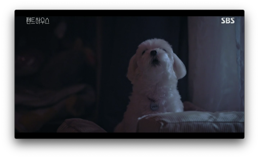 오윤희는 늦은시간에 설탕이가 짖어서 짖지말라고 하는데 설탕이아 오윤희를 물고 방으로 도망갑니다.