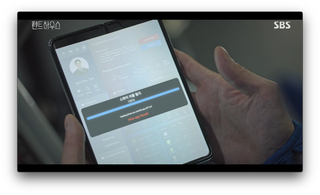 주단태는 조비서를 통해 핸드폰 스파이어플에 대해서 확인을 하고 업체사람은 현재 핸드폰은 도청중이라고 알려줍니다. 그리고 설치가 되어 있던 어플은 삭제를 하고 핸드폰은 주단태에게 줍니다. 주단태는 곰곰히 생각을 해보는데 갑자기 심수련이 생각이 납니다.