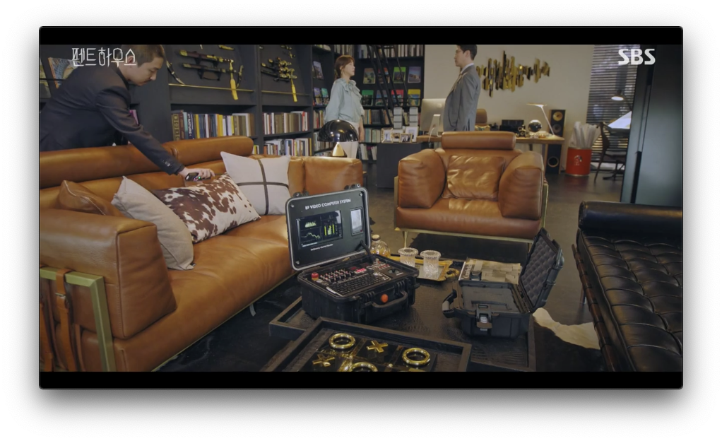 그 시각 심수련은 도청을 하기 위해서 확인을 하는데 신호없음이란 메시지를 확인하고 이상함을 감지하고 바로 주단태의 서재로 뛰어 갑니다. 주단태에 서재에도 도청장치가 있기 때문입니다. 심수련이 뛰어가고 바로 따라가는 주단태와 조비서 입니다. 서재에서 심수련을 보자 주단태는 서재에 왜 있냐고 물어보고 심수련은 책을 빌리러 들어왔다고 말합니다. 주단태의 지시에 따라 조비서는 바로 도청장치를 찾아봅니다.