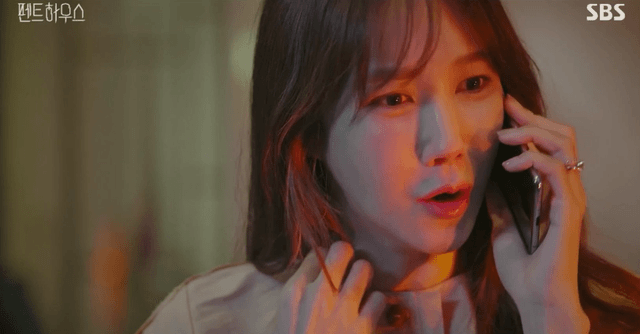 심수련은 민원장에게 협박을 받고 있고 그때 주단태가 집에 올라갔고 주단태는 심수련 누군가와 통화하는 모습을 지켜봅니다. 심수련은 당신이 원하는게 뭐냐고 말하고 민원장은 보석금 내고 여기저기 빽좀 쓰면 빼줄수 있는 능력 있잖아요 사모님이 어려우시면 주단태회장한테 부탁드려야 할까요 라고 말합니다. 그러자 심수련은 그러면 내 남편손에 죽어라고 말합니다. 민원장은 내일 만나러 오라고 말하고 전화를 끊습니다. 주단태는 모든 상황을 보고 협박받고 있다 누구한테? 라고 생각을 합니다.