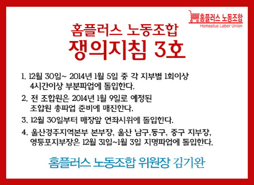 3. 12월 30일부터 매장앞 연좌시위에 돌입한다.