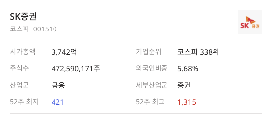 그래서 SK증권(001510)에 대해서 한번 알아보는 시간을 가져봐야겠다는 생각을 해봐서 작성을 하게 되었습니다.