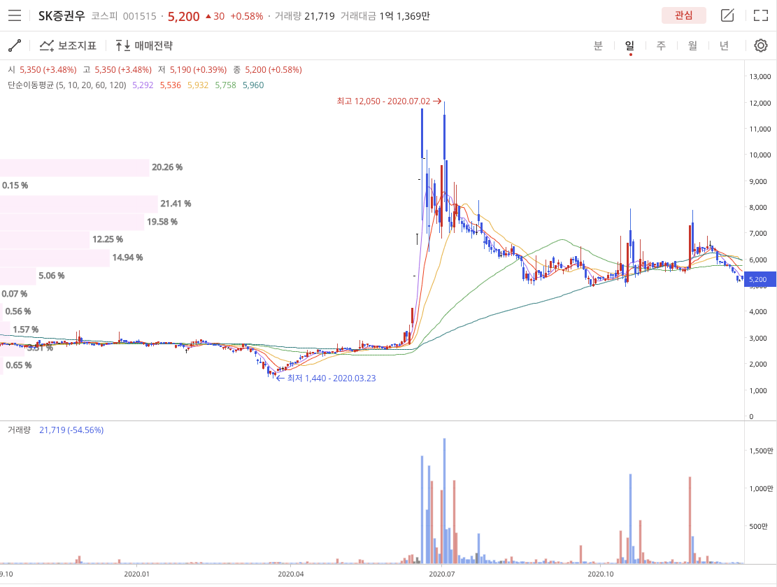이번 포스팅은 SK증권(001510)종목정보를 알아보는 시간입니다. 이 종목은 대략 4천원 정도 이익을 얻었던 종목입니다.