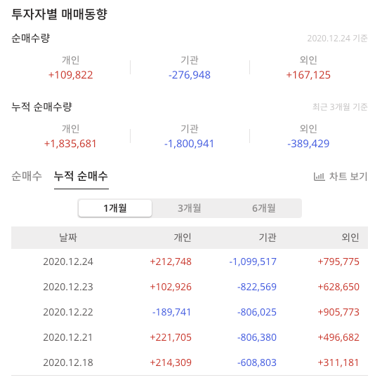 SK증권(001510)의 투자자별 매매동향은 최근 3개월 기준으로 누적 순매수량은 개인이 매수포지션이고 기관과 외인은 매도 포지션입니다.