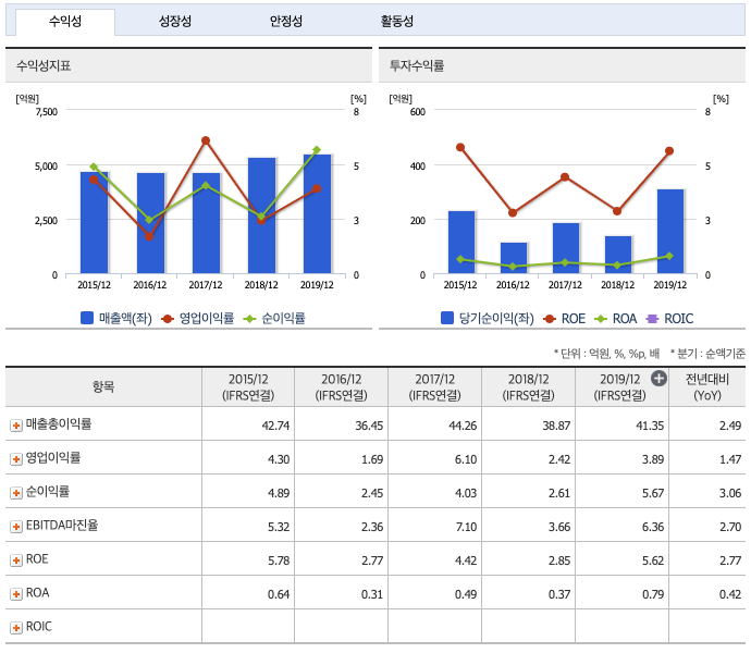 전분기 대비해서는 영업이익과 순이익이 상승했습니다.