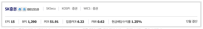 여기까지 준비한 SK증권(001510)종목 정보였습니다. 다른종목에서 또 만나요.