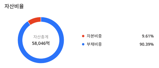 SK증권(001510)의 자산비율은 자본비중 : 9.61% 이며 부채비중 : 90.39%입니다.